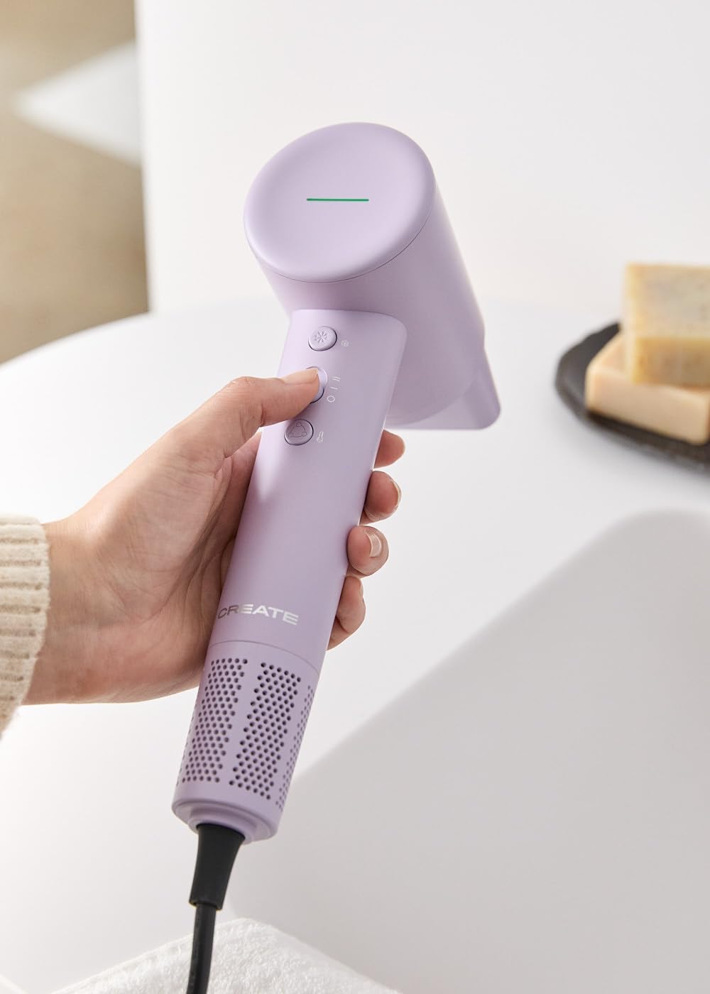 CREATE Ion-Styler / Lavendel Ionen-haardroger, Frizz-Free technologie, 2 temperaturen, koude functie, 2 snelheden, negatieve ionentechnologie, 1800 W