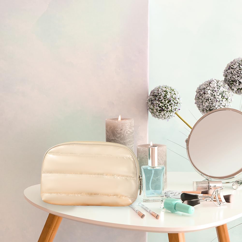 Cymwer Women Make Up Organizer PU Leather Puffy Cosmetic Pouch Cotton Zipper Solid Color Waterproof For Brush Lipstick Eyeliner Eyebrow Pencil, White, S, carefree, Yellow, casual