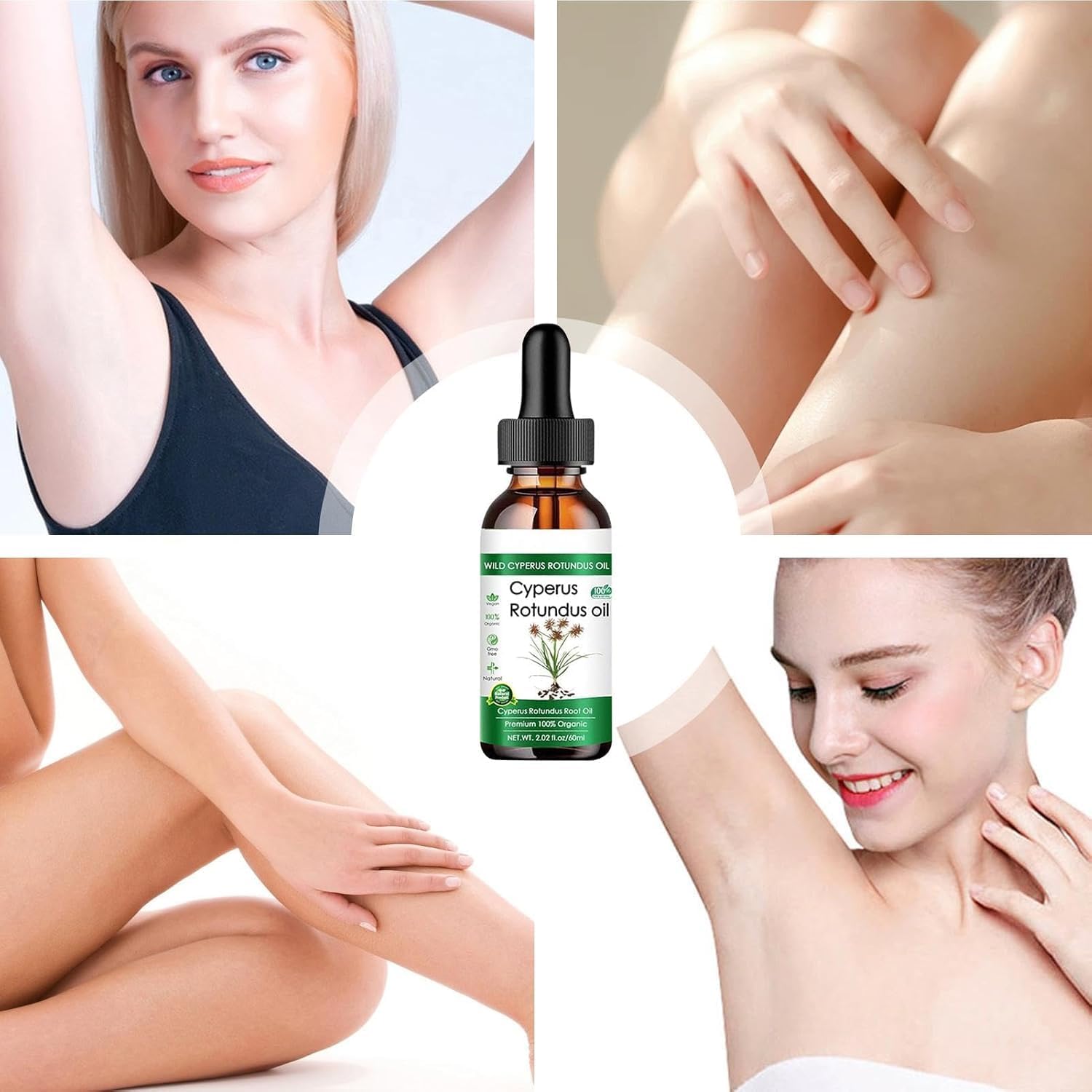Natural Hair Reduction: Made from pure, cold-pressed Cyperus Rotundus oil, this product offers a gentle, natural solution for slowing down hair regrowth and reducing unwanted body hair over time