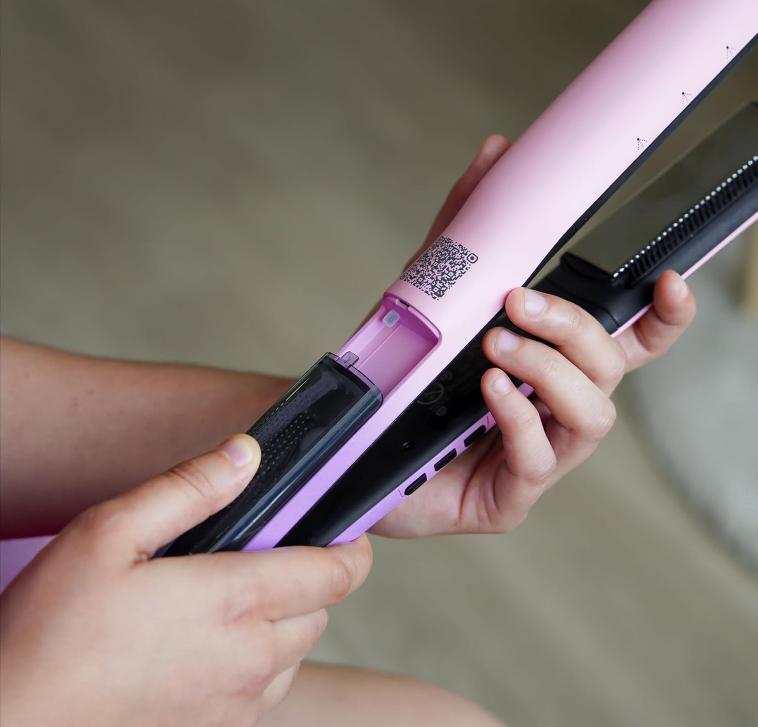 Vul je reservoir met behulp van het navulflesje dat bij de stijltang wordt geleverd (en afzonderlijk verkrijgbaar is als reserveonderdeel), wanneer het apparaat niet is aangesloten en afgekoeld is, en bij voorkeur met gedemineraliseerd water.