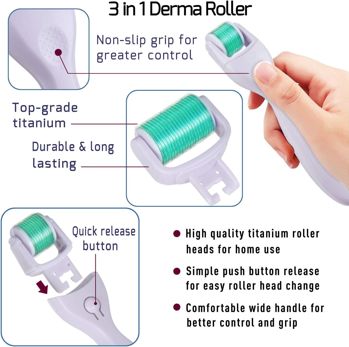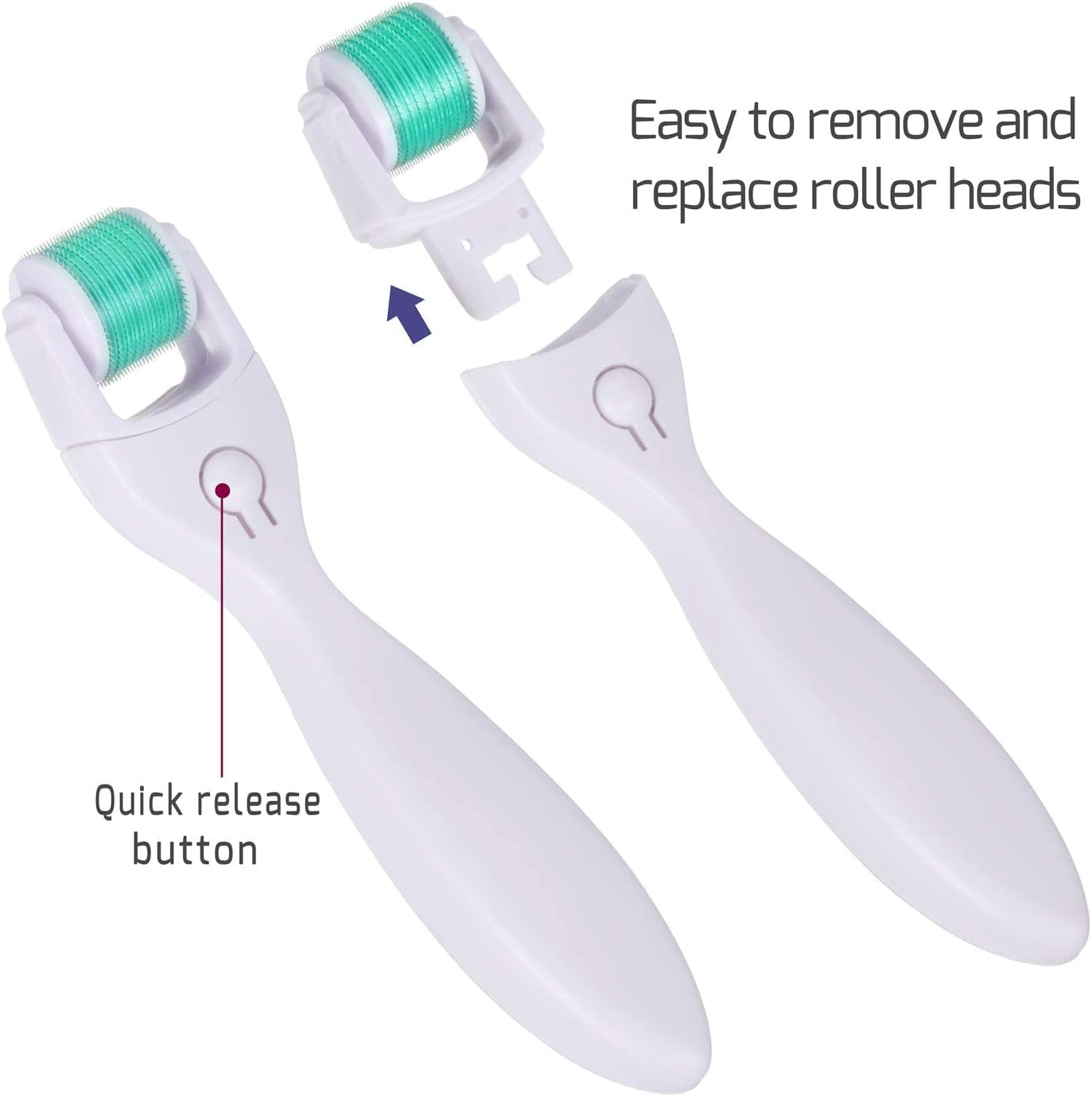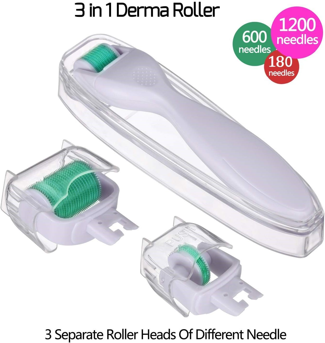 Derma Microneedling Roller 3-in-1 set baardroller, bearroller, 600 (0,30 mm), 180 (0,25 mm), 1200 (0,50 mm), voor gezicht en lichaam (groen)