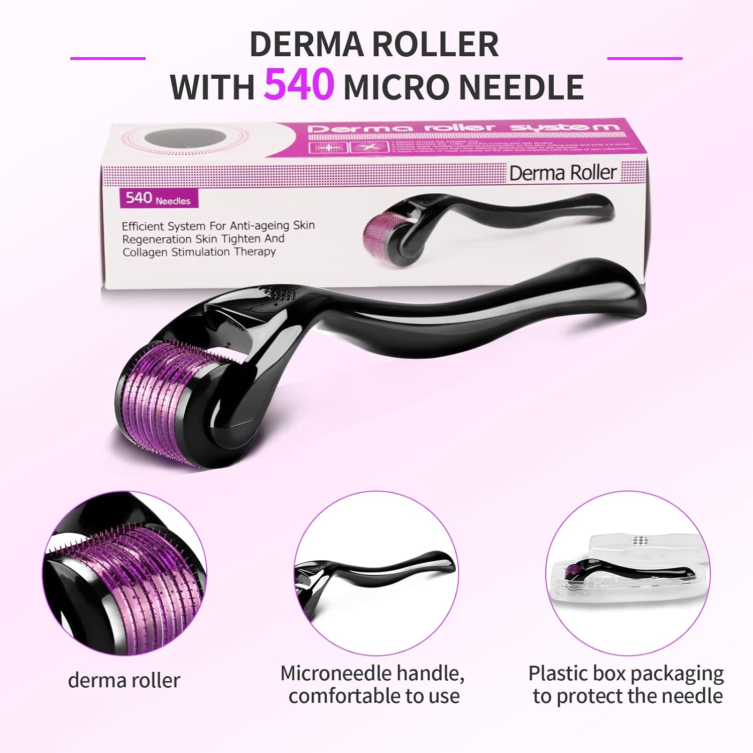 Derma Roller 0.5mm Naalden 540 Titanium Microneedle Roller voor gezicht huidverjonging Anti-rimpel Anti-aging Huidregeneratie Haaruitval Acne littekens Stretch Marks