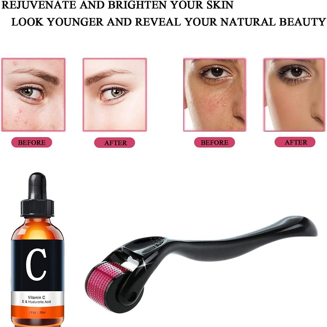 2Pack derma Roller (0.5mm/1.0mm)+Vitamine C Serum 20% & Vitamine E met Hyaluronzuur