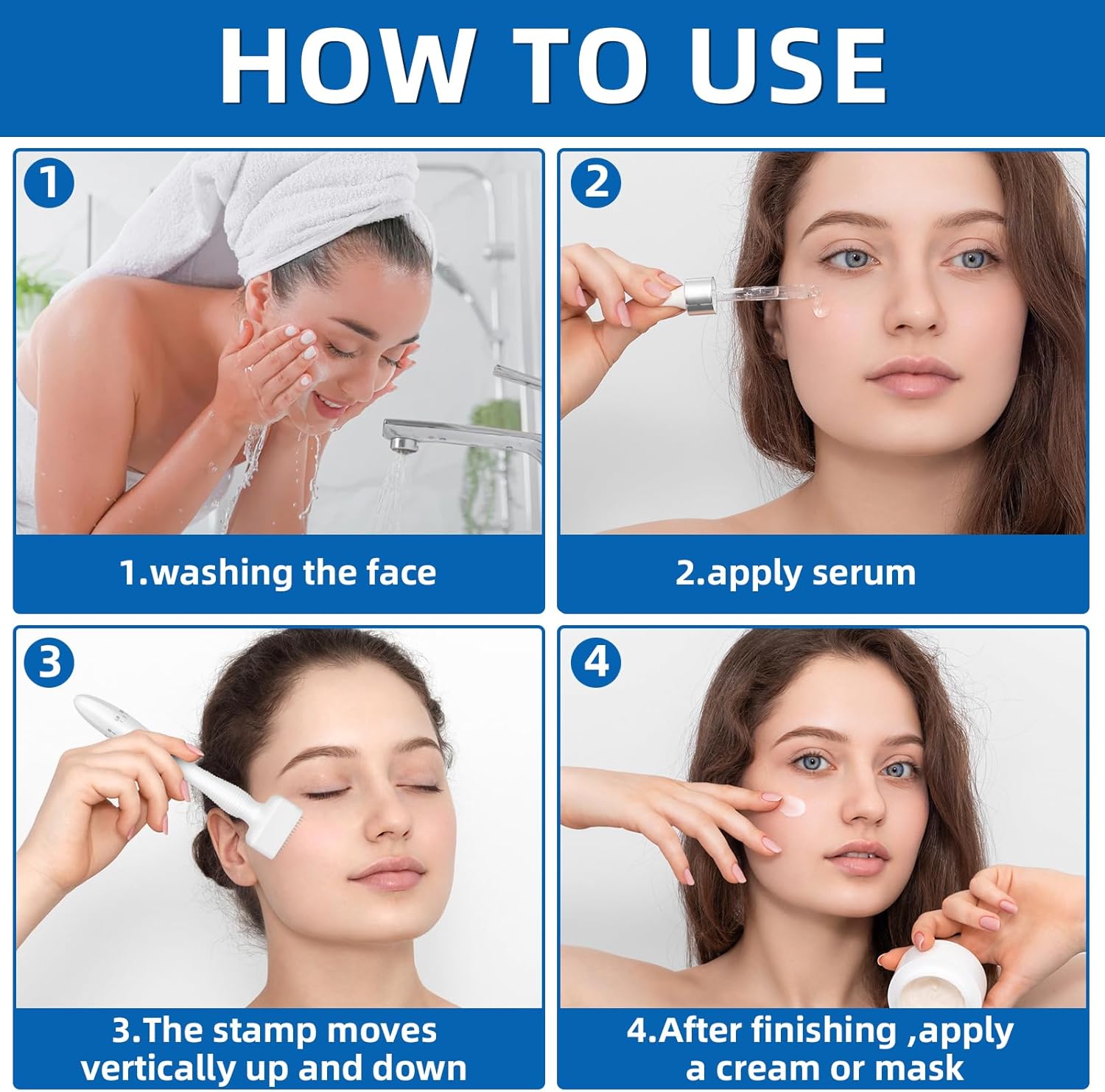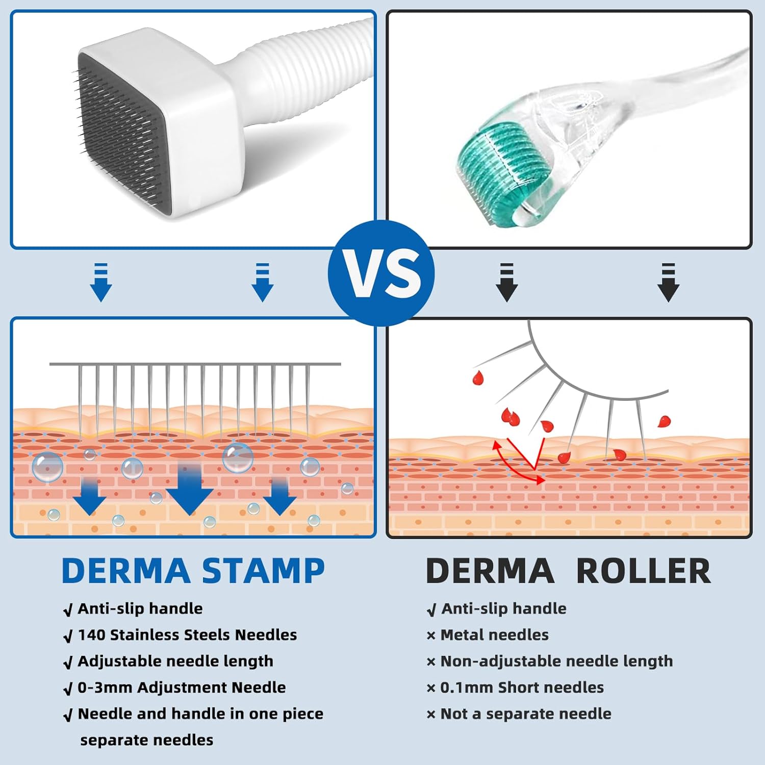 Micro-needling stimulatie: de microneedling dermap-stamp is ontwikkeld met 140 ultrafijne naalden, die zacht over de huid rollen om het lichaamseigen reparatieproces te activeren en de collageenproductie voor verbeterde elasticiteit en textuur te activeren. Door collageen synthese te bevorderen, helpt dit gereedschap gladder en stralende huid te bereiken.