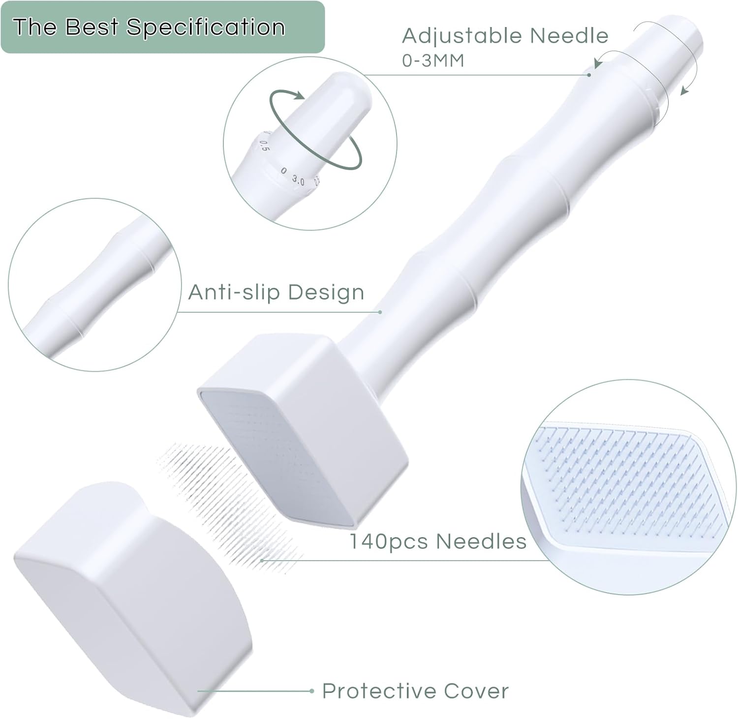 Derma Stempel, Verstelbare Microneedling Stempel 0-3mm met 140 Titanium Pinnen, Professionele Dermastamp Derma Pen Derma Microneedling Roller voor Haar Baard Gezicht Lichaam (Vernieuwd Wit)