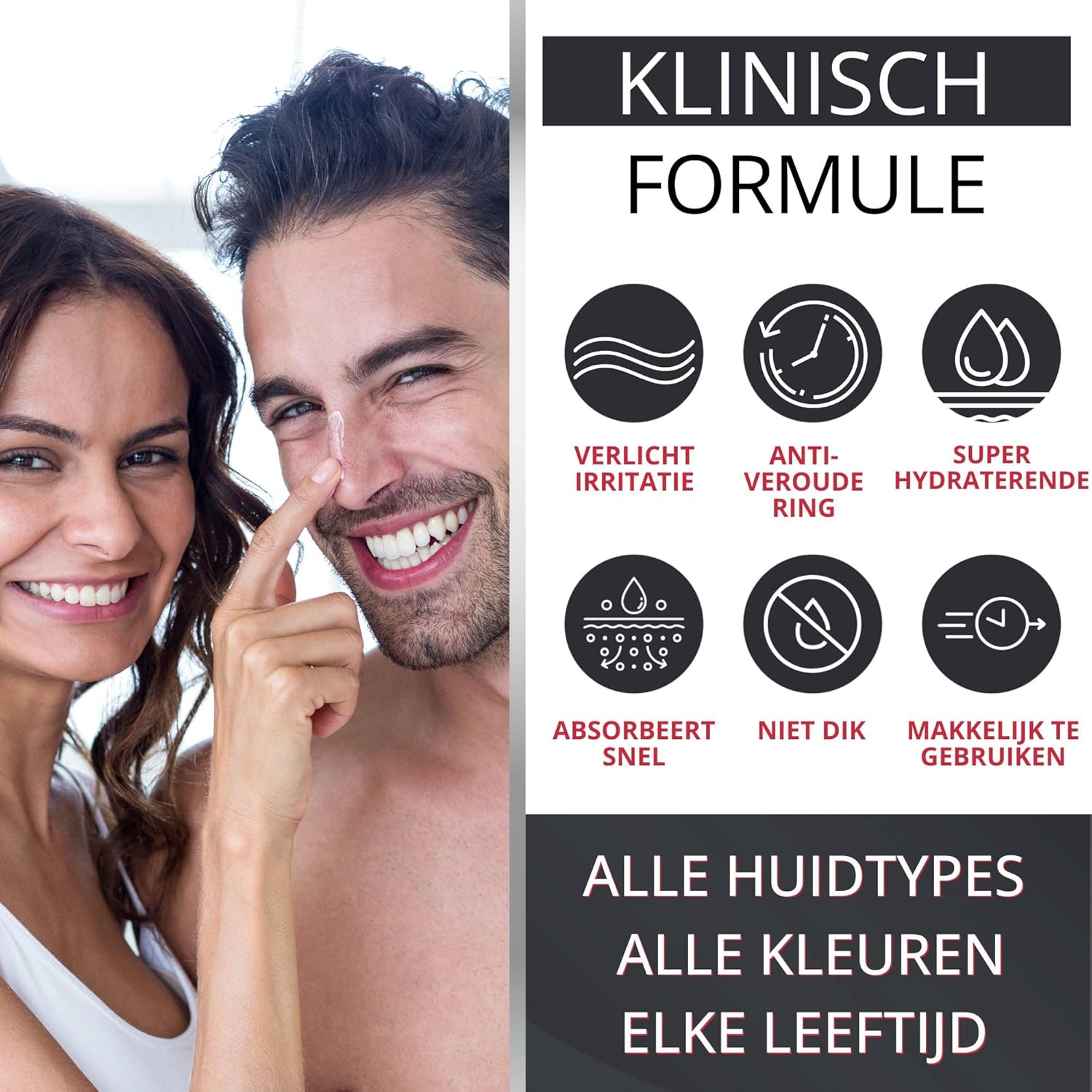 ✅ NA HET SCHEREN VERZORGING: Onze innovatieve formule van face cream for men biedt niet alleen diepe hydratatie, maar fungeert ook als een effectieve aftershave. Ideaal om de huid na het scheren te kalmeren en te revitaliseren, vermindert deze anti rimpel creme irritatie en laat je gezicht zacht en fris aanvoelen. Zeg vaarwel tegen irritatie en hallo tegen hydratatie! Geniet van een gezondere en beschermde huid bij elk gebruik. Kies voor onze crème voor mannen en voel het verschil.