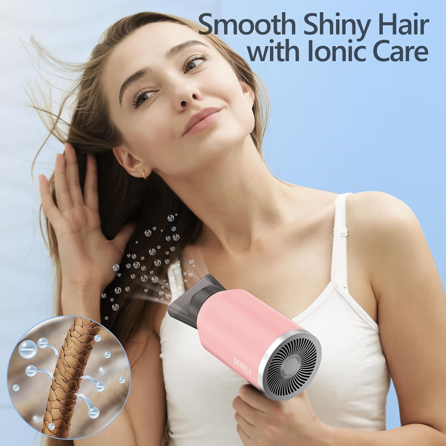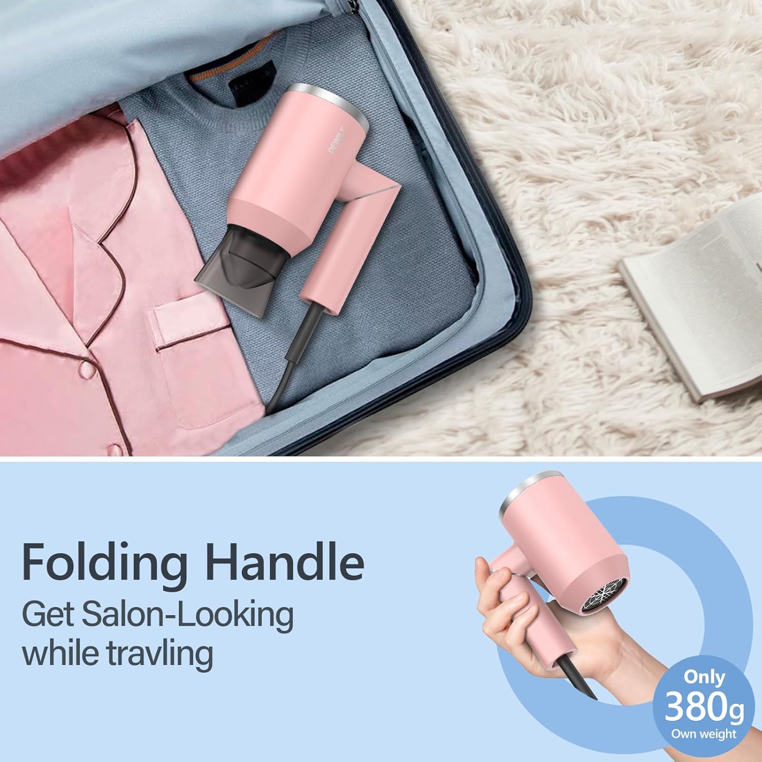 DEWILY Opvouwbare Professionele Haardroger – Reisföhn, Inklapbaar, Klein, Stil, 3 Warmten, Sterk Voor Het Gezin (Roze-1 Mondstuk)