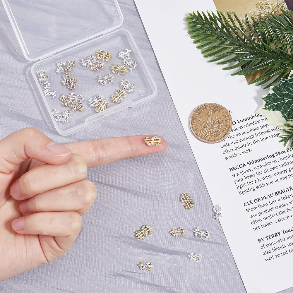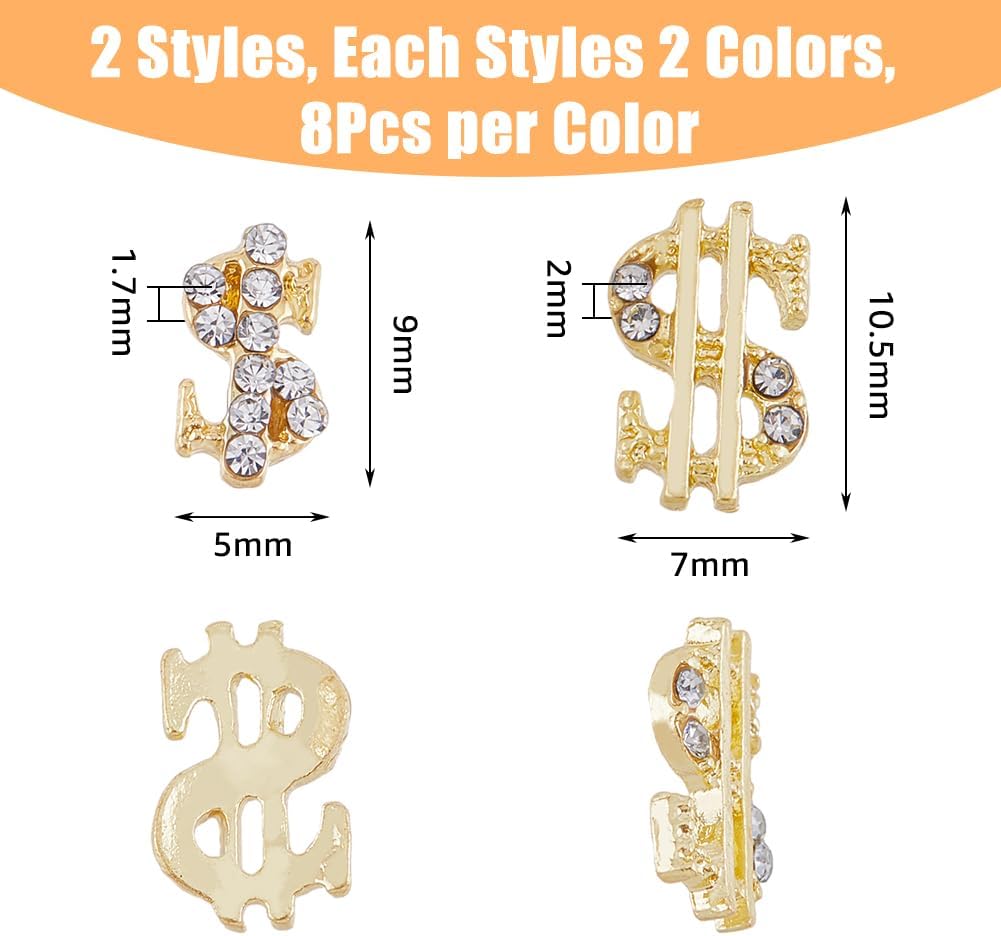 DICOSMETIC 32 Stuks 2 Stijlen Nail Art Steentjes Legering Nail Art Dollar Nail Charms Gouden en Zilveren Nail Art Decoratie Accessoires Set Voor Sieraden Maken Ambachten DIY Manicure