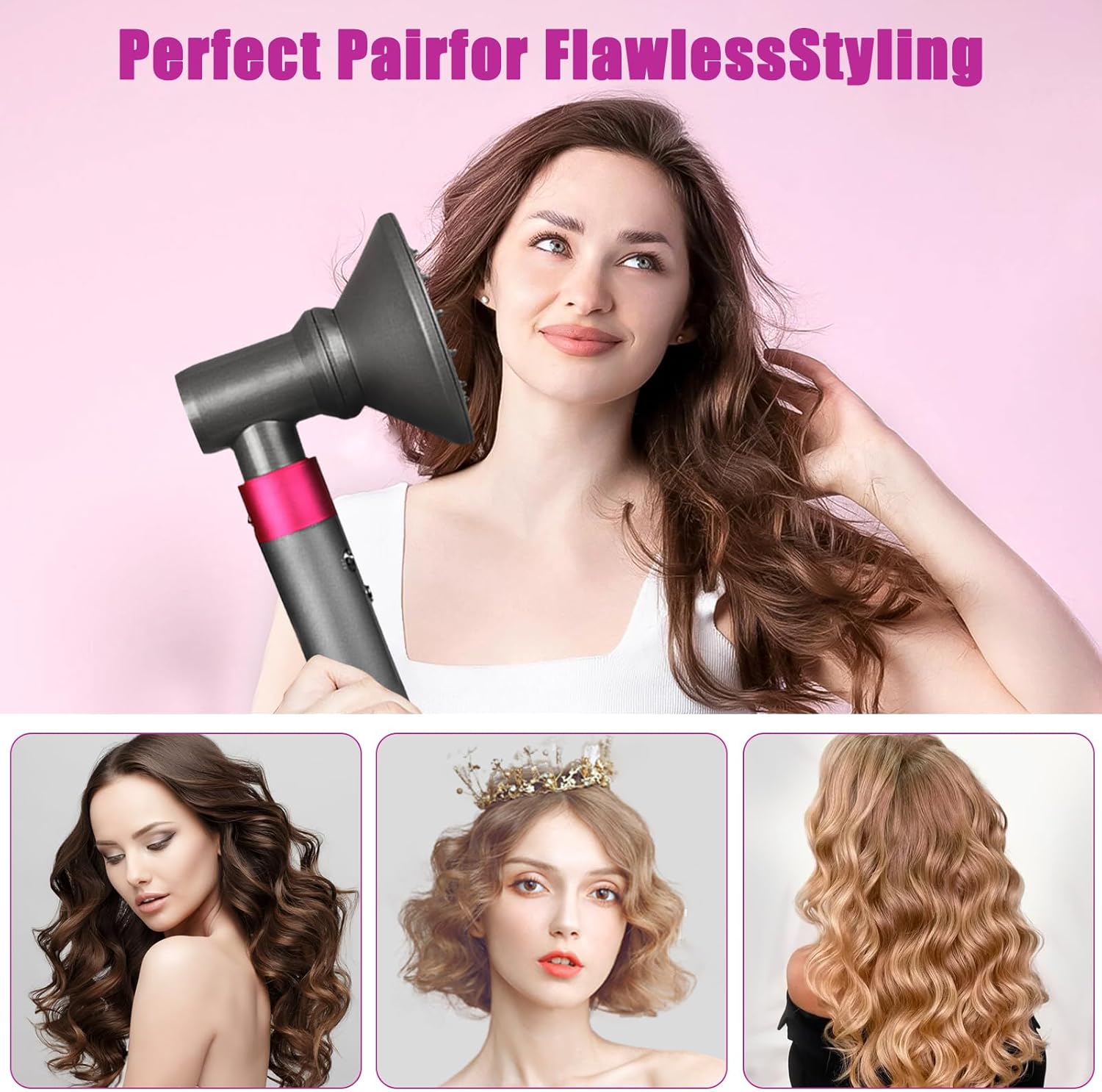 Elimineer kroesproblemen: de diffuser helpt je om je natuurlijke krullen en golven te creëren, waardoor een pluisvrije, volumineuze look wordt bevorderd. Lange tanden reiken diep in het haar om de lucht gelijkmatig te verspreiden, het natuurlijke drogen te simuleren en kroezen te temmen.