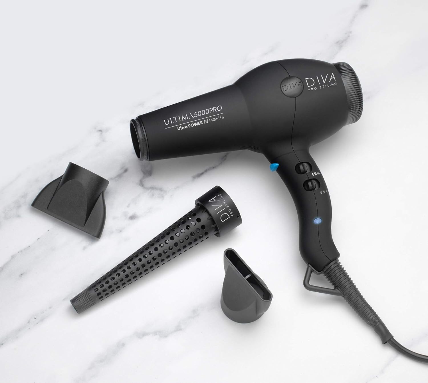 Diva Professional Styling Ultima 5000 Black Rubberised Haardroger met wand