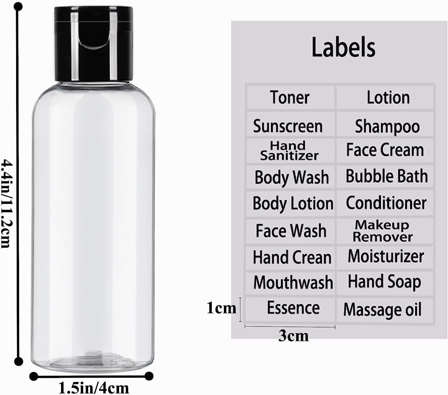 These travel-size bottles are a game-changer for packing light. I use them for my shampoo, conditioner, lotion, and even face wash. The leak-proof design gives me peace of mind, knowing my luggage won’t end up a mess. The clear bottles also make it easy to see how much product is left.They are easy to refill, clean, and durable enough for multiple trips. Highly recommend for anyone who travels frequently!