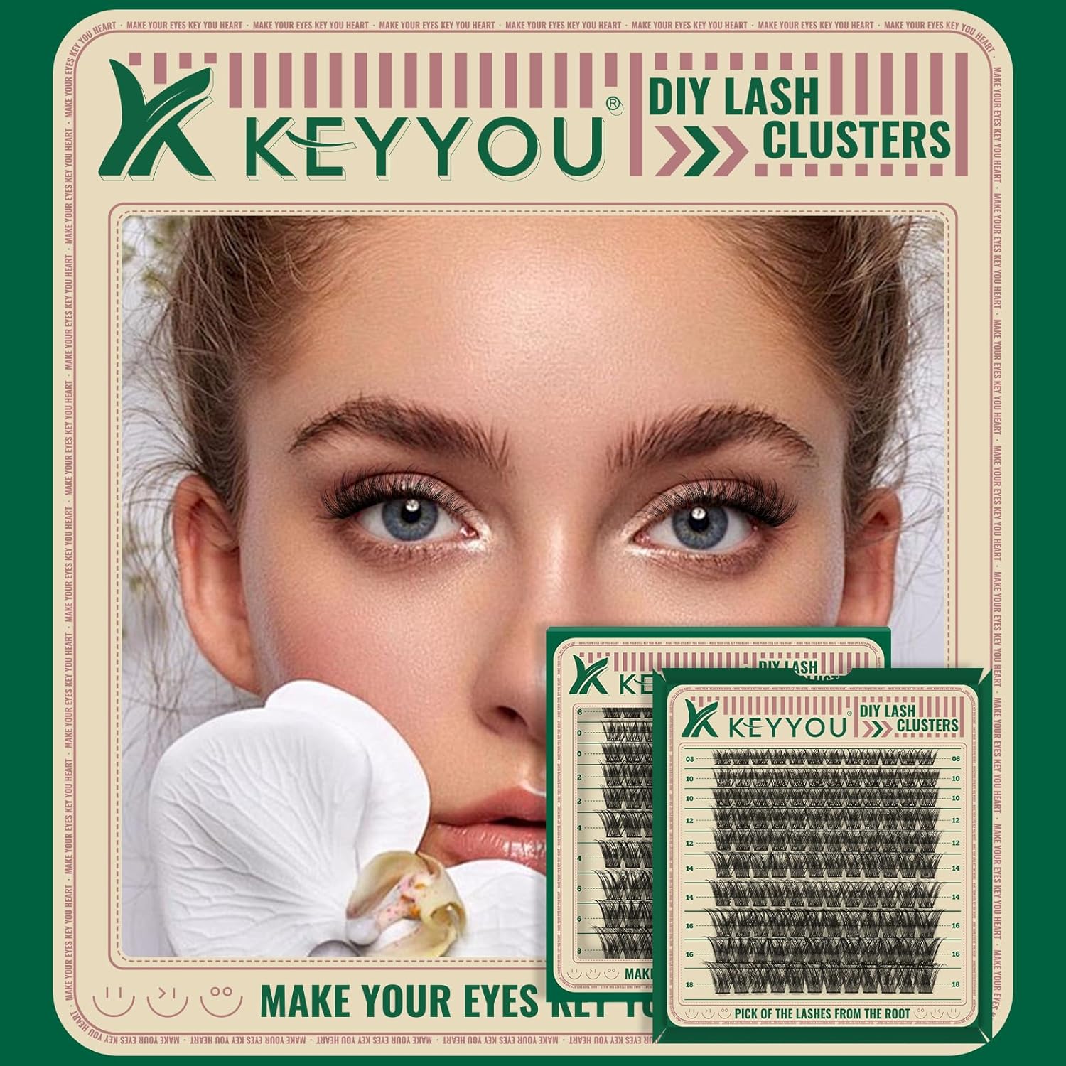 Overzicht van het product: KEYYOU Doe-het-zelf wimperextensies, set, 120 stuks, wimperextensions, D-krul, 8-16 mix, wimpercluster met Super Hold Cluster wimperbinding en afdichting en wimperapplicator (DV02KIT)