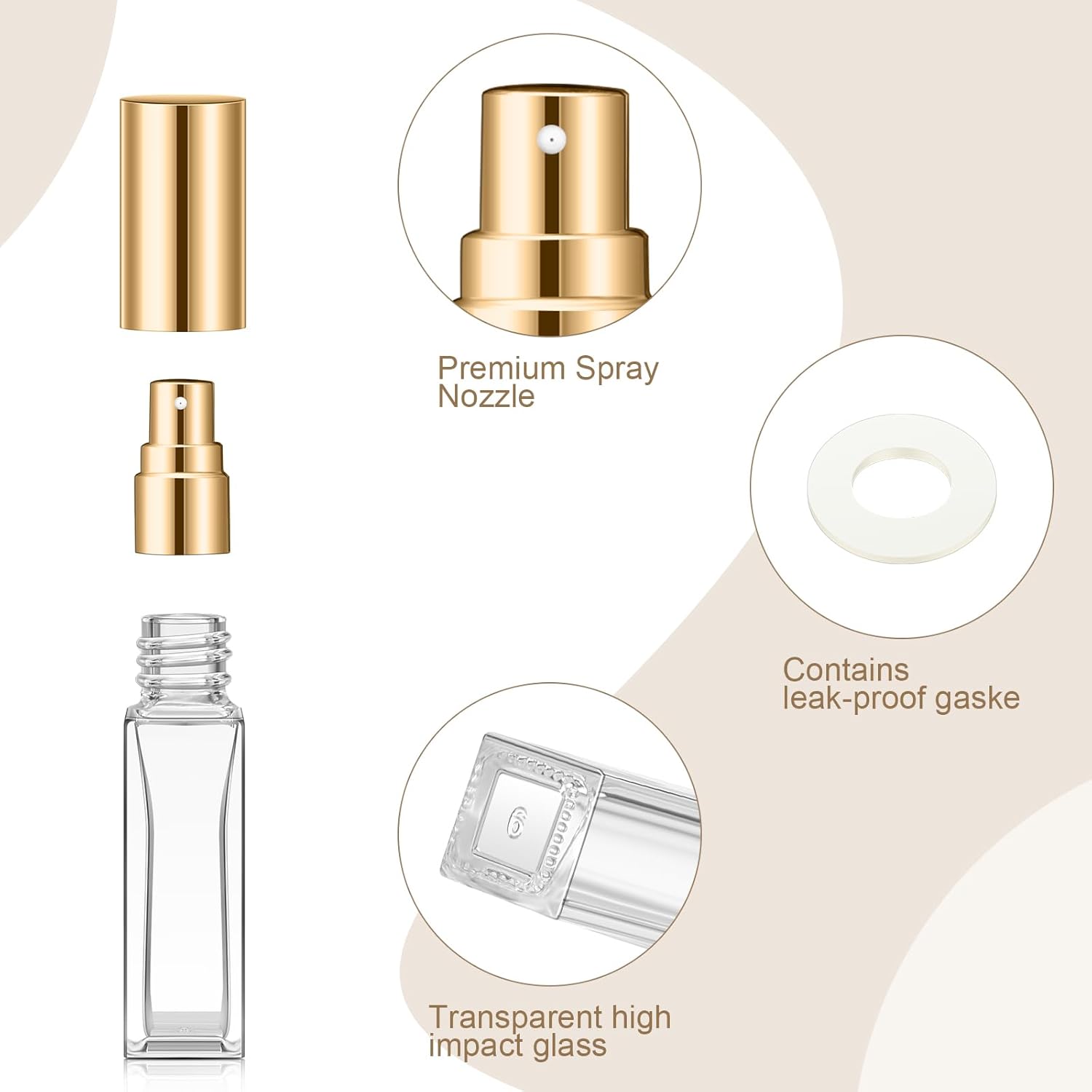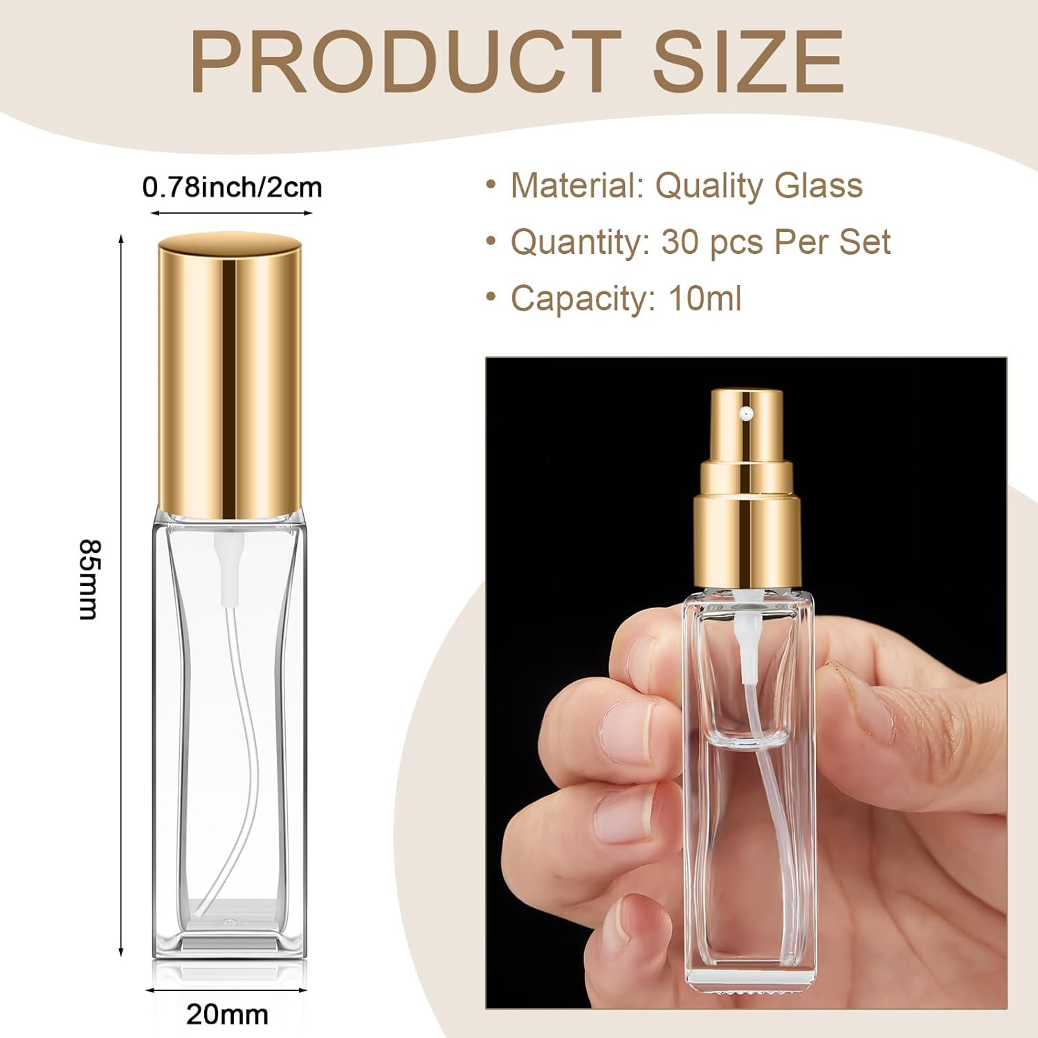 Domensi 30 Stuks Glazen Parfum Reizen Hervulbare Flessen 8 ml Mini Keulen Parfum Flessen Leeg Geen Lek Reizen Grootte Verstuiver Spray voor Parfum Mini Clear Monster Dispenser (Goud)