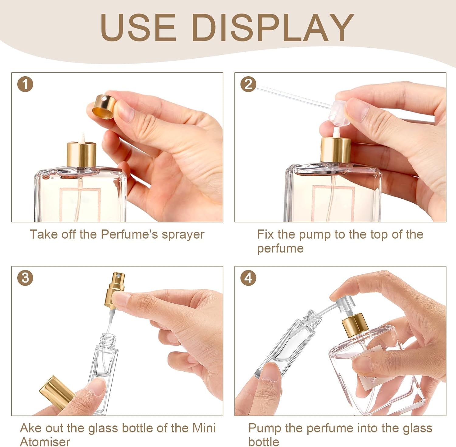 Herbruikbaar en gemakkelijk schoon te maken: reisparfumfles is herbruikbaar, wat betekent dat je ze steeds opnieuw kunt vullen met je favoriete geuren; ze zijn ook gemakkelijk schoon te maken en het glasmateriaal betekent dat je ze kunt wassen