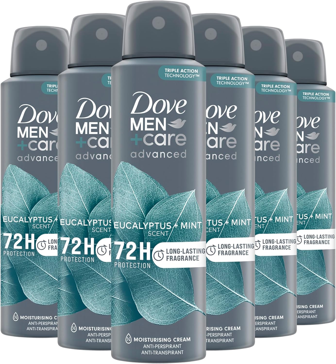 Dove Men+Care Advanced Eucalyptus + Mint Anti-Transpirant Deodorant Spray, tot 72 uur bescherming tegen zweet en nare geurtjes – 6 x 150 ml – Voordeelverpakking