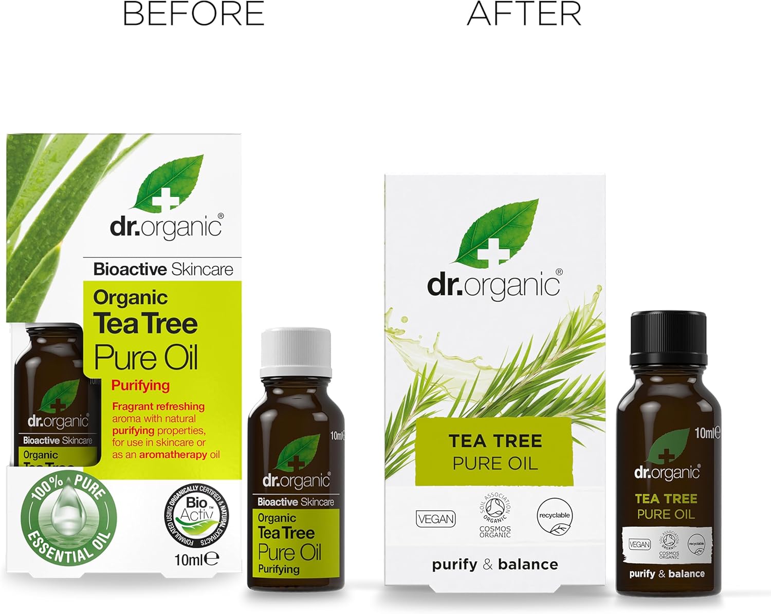 Dr Organic Tea Tree Pure Olie, Zuiverend, Essentiële Olie, Vette Huid, Natuurlijk, Veganistisch, Dierproefvrij, Zonder Parabenen & SLS, Biologisch, Gerecycled & Recyclebaar, 50ml