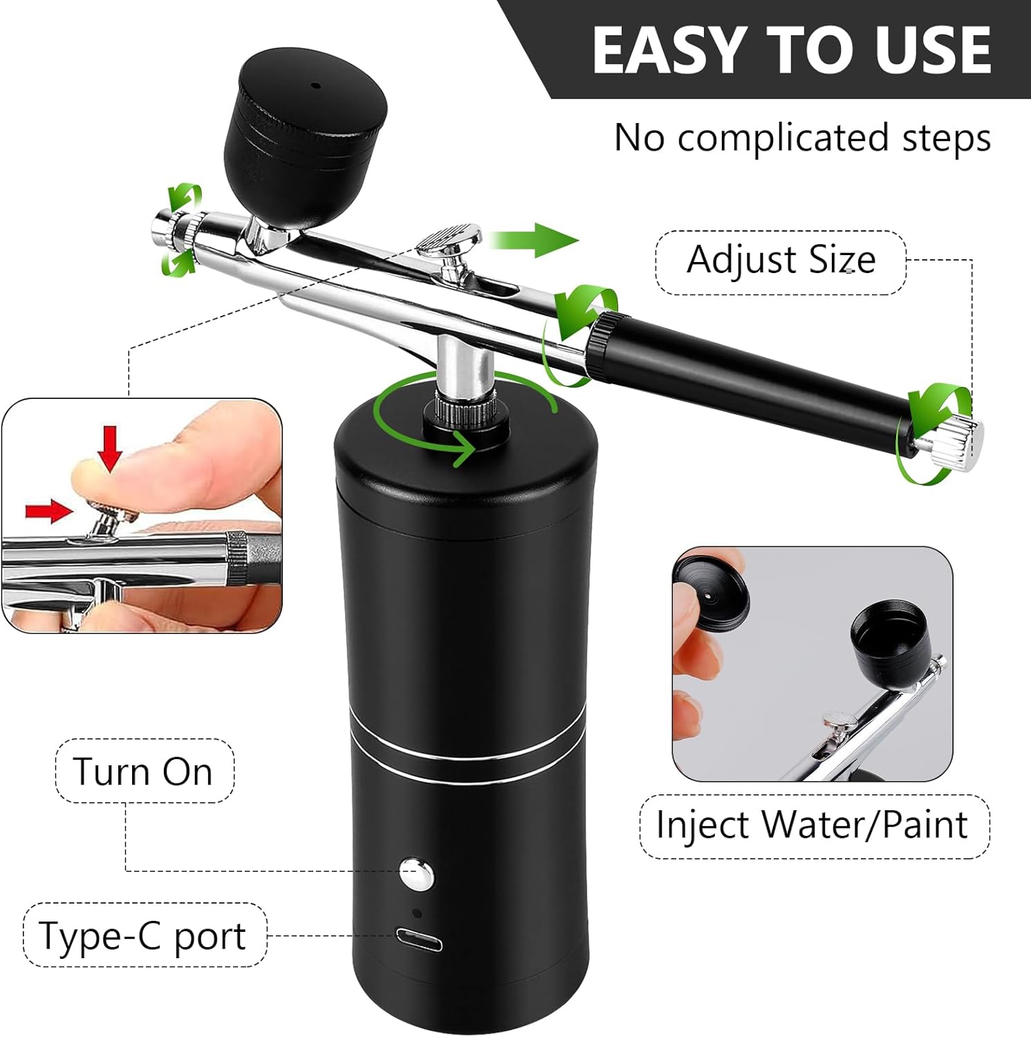 Oplaadbare mini-airbrush-set: de draadloze airbrush-set is geschikt voor verschillende toepassingen. Draadloze airbrush-pistoolset met zijn kleine formaat, kan gemakkelijk overal mee naartoe worden genomen.