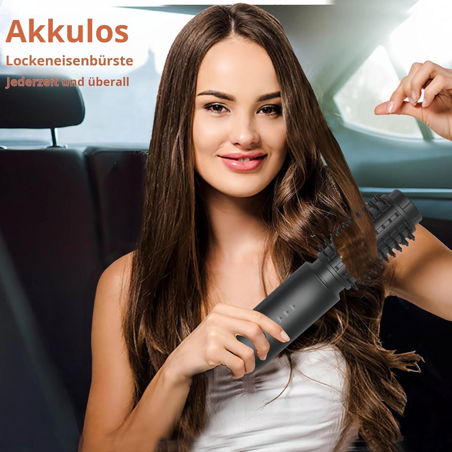 Draadloze krultangborstel met negatieve ionen, draagbare reis-krultang, miniborstel voor vrouwen, 7000 mAh, USB-oplaadbare stylingborstels (donkerzwart)