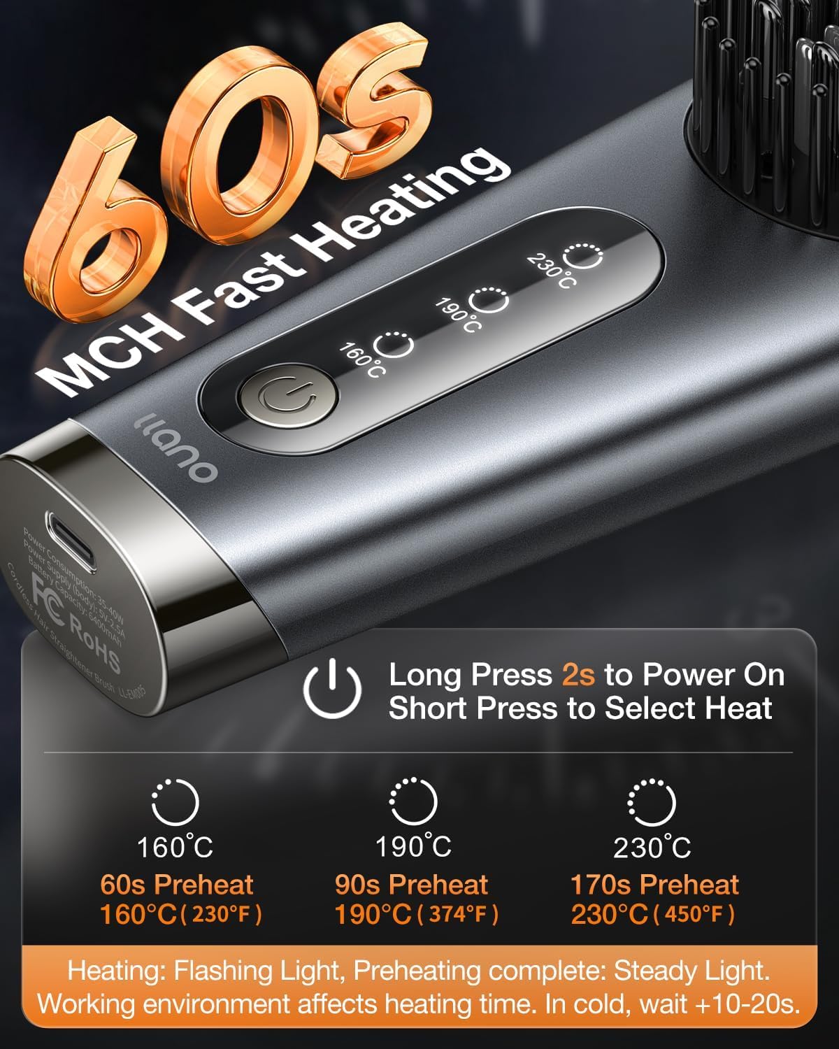 💗 3 nauwkeurige MCH-verwarmingsinstellingen: met geavanceerde MCH-verwarmingstechnologie ervaar je 60 seconden snel opwarmen, efficiënter en stabieler dan conventionele PTC-staven. De draadloze stijltang heeft 3 instelbare warmte-instellingen om uit te kiezen (160 °C/350 °C – 60 seconden om op te warmen, 190 °C/450 °C – 90 seconden, 230 °C/750 graden Celsius), 90 seconden, 230 °C / 750 °C – 90 seconden, 230 °C / 230 °C / 230 °C / 230 °C. 2 graden Celsius. 2 °C – C-90 seconden, 230 °C / 750 °C – 90 seconden, 230 °C / 750 °C – 90 seconden). seconden, 230 °C / 750 °C – 170 seconden). Het controlelampje knippert tijdens het voorverwarmen en blijft ingeschakeld wanneer de verwarming is voltooid. Geschikt voor alle haartypes, van 2A golven tot 4C krullen, het perfecte gereedschap voor professionals om het perfecte kapsel te creëren.