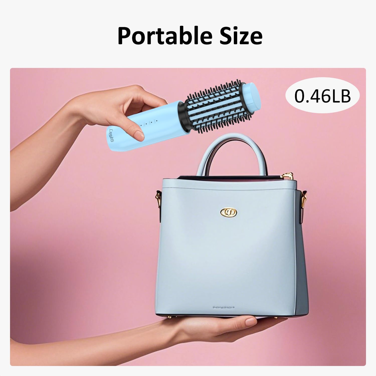 Draadloze verwarmde krulborstel, 3-in-1 hete haarborstel 40 mm, draagbare verwarmde krultang en stijlborstel met 4 temperaturen, 7000 mAh, USB-oplaadbaar, draadloze krultang, blauw