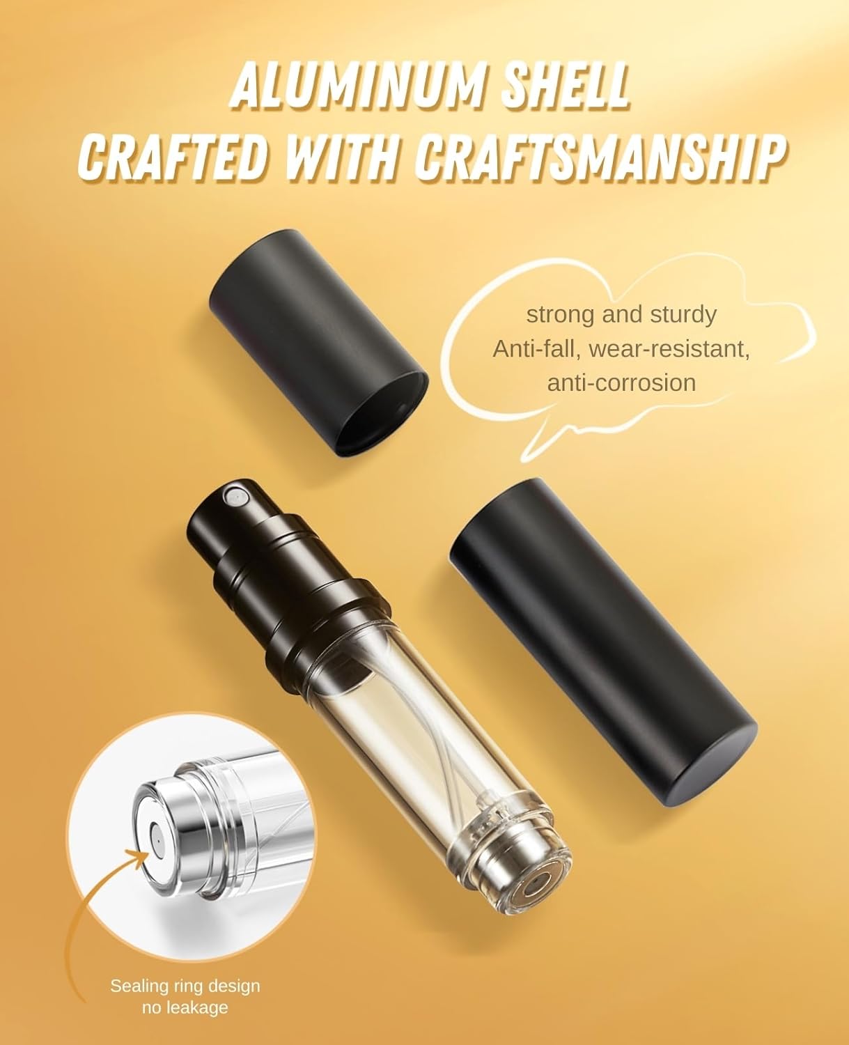 Lekvrij ontwerp: bodemvulling – Gebruikt een puur koperen vulklep om lekken te garanderen. Het bodemvulontwerp maakt het gemakkelijk bijvullen mogelijk door het product voorzichtig op de hoofdparfumfles te drukken; eenvoudig en snel zonder afval