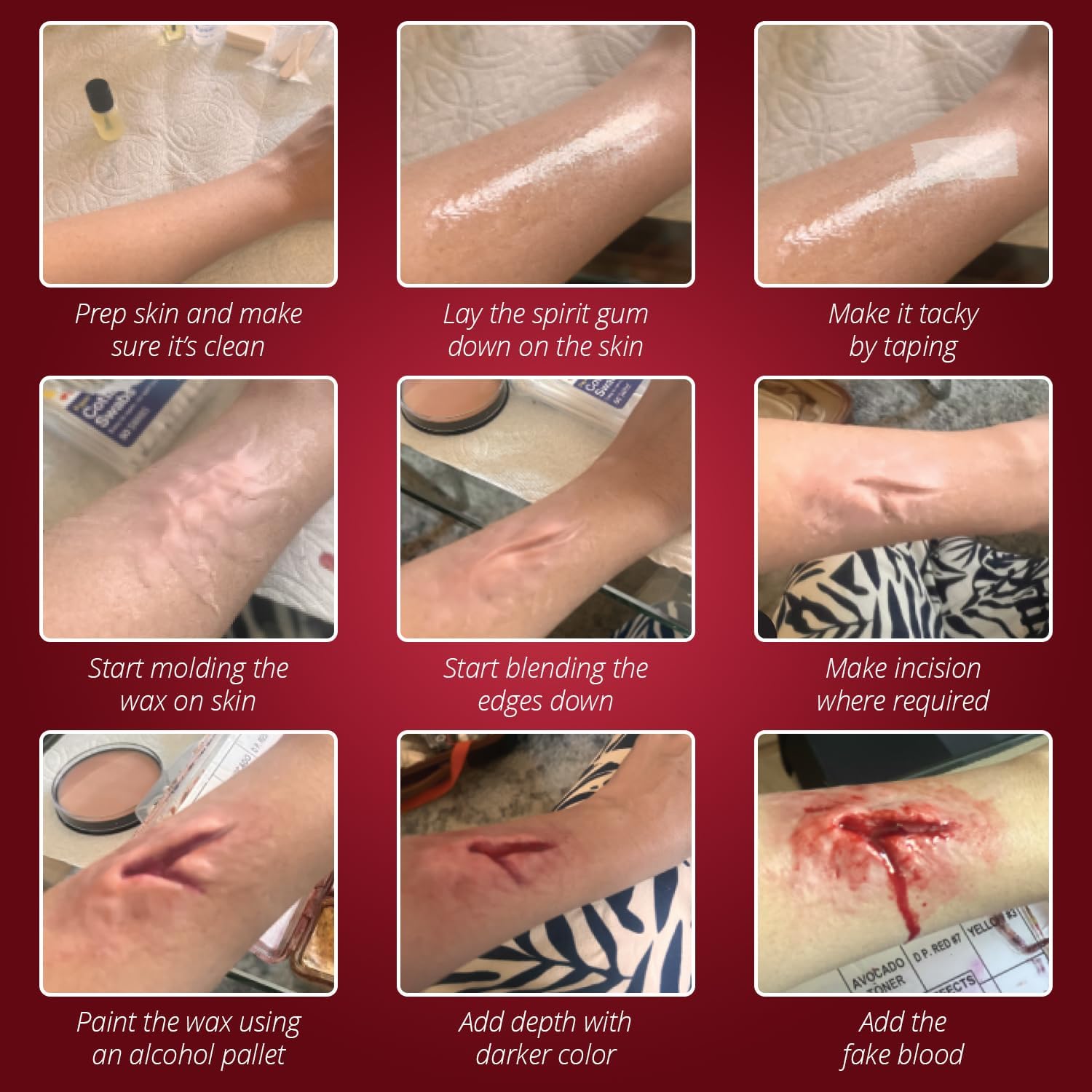 Geweldig voor beginners – Maak je kostuum compleet met deze make-upset. De eenvoudige stapsgewijze instructies maken het gemakkelijk om de speciale effecten opnieuw te creëren. Van snijwonden, littekens, wonden, snijwonden en meer.