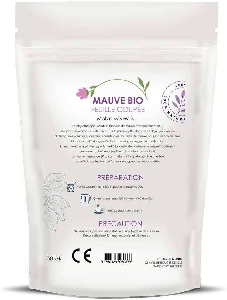 Dry Mauve Tisane Cut Leaves – Digestief infuus en Detox verlicht hoest – 50g