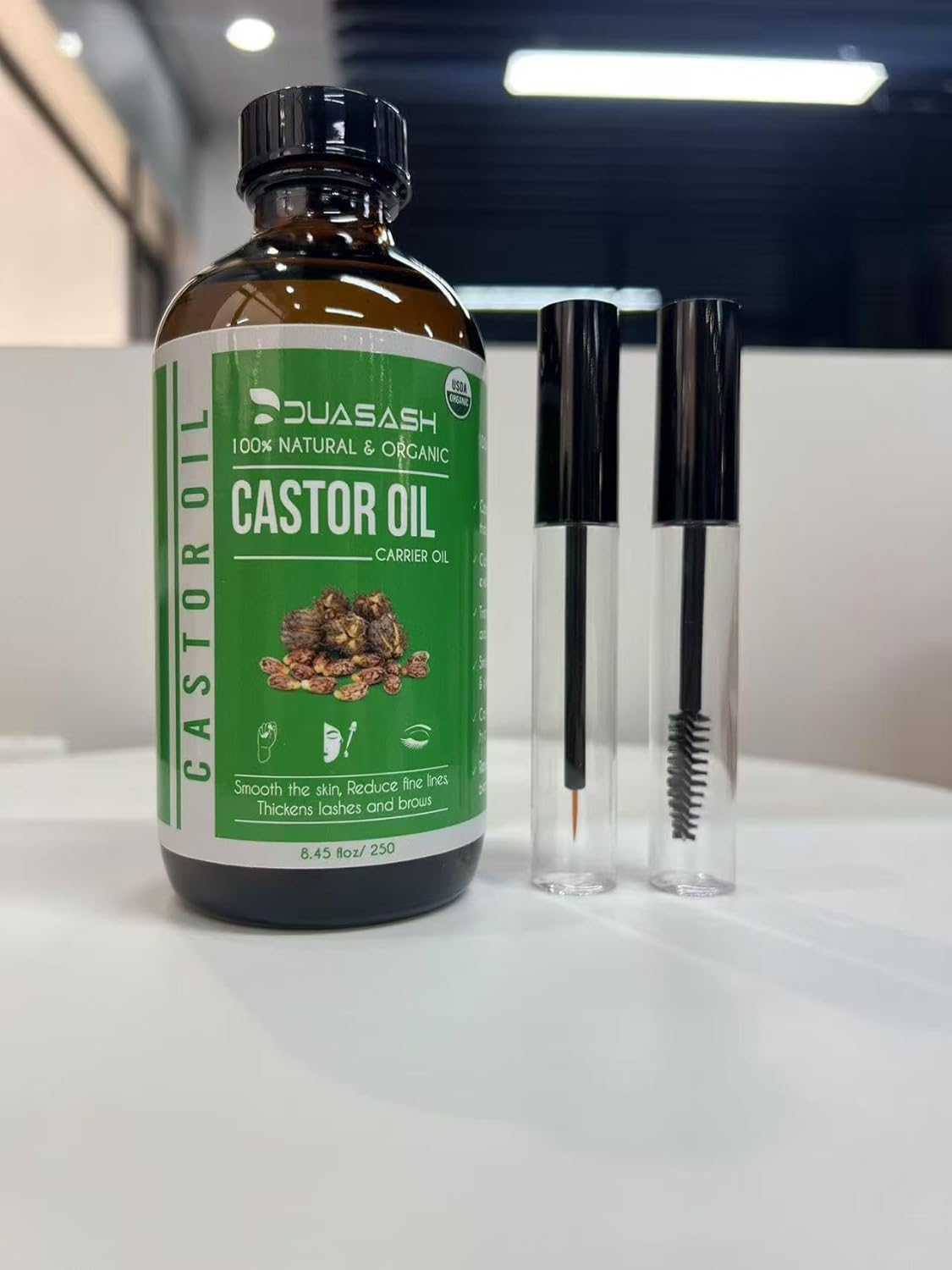 Duasash De biologische ricinusolie koudgeperste glazen fles is 100% zuiver en natuurlijk en afkomstig uit biologische teelt. Gevuld in een hoogwaardige bruine glazen fles is de olie beschermd tegen schadelijke uv-straling en wordt geleverd met een glazen pipet voor eenvoudig gebruik. De fles bevat 100% pure ricinusolie voor haargroei zonder toevoeging van drageroliën, zodat je het volledige effect van zijn natuurlijke eigenschappen kunt benutten. Duasashs castorolie organische koudgeperste hexaanvrij wordt door koude persing gewonnen en is volledig ongeraffineerd, waardoor de hoogste zuiverheid wordt gewaarborgd. De fles bevat uitsluitend biologische ricinusolie, vrij van additieven en conserveringsmiddelen. Onze ricinusolie is bovendien hexaanvrij, waardoor de natuurlijke eigenschappen behouden blijven en huid en haar worden gespaard. Pure biologische ricinusolie bevordert niet alleen de groei van haar, wimpers en wenkbrauwen, maar is ook een veelzijdig product. Koudgeperste ricinusolie is een belangrijk onderdeel van anti-roos shampoos, haargroeimiddelen en kan ook als nagelolie worden gebruikt. Bovendien werkt het als een uitstekende natuurlijke vochtinbrengende crème en draagt het bij aan de algemene gezondheid van de huid. Gebruik: ricinusolie voor haargroei: 1. Koud geperste casterolie op de hoofdhuid aanbrengen en inmasseren. 2de 30 minuten laten inwerken. Verwarm de olie zodat deze sneller in de hoofdhuid trekt. Als alternatief kun je het ‘s nachts laten inwerken en je haar met een douchemuts bedekken. 3de Meng voor een eenvoudig gebruik je spoeling met ricinusolie biologisch koudgeperst hexaanvrij. Zorg ervoor dat het aandeel ricinusolie ongeveer 20% bedraagt. Ricinusolie voor wimpers en wenkbrauwen: 1. Zorg ervoor dat je gezicht voor gebruik vrij is van make-up. 2de Doe een druppel biologische koudgeperste ricinusolie op onze applicators en borstel je wimpers of wenkbrauwen licht in beide richtingen om ervoor te zorgen dat ze volledig bedekt zijn. 3de De olie kan ook worden gebruikt voor gezicht, lichaam, nagels en lippen. 4de Voor een betere penetratie kun je de olie 10-30 seconden verwarmen. Voor optimale resultaten dagelijks gebruiken. Het product bevat gratis wimperborstelsets en vijf wenkbrauwborstelsets. Wij houden ons aan de hoogste productienormen om ervoor te zorgen dat al onze producten van de hoogste kwaliteit zijn. Ons doel is om wereldwijd het beste te bieden op het gebied van kwaliteit, effectiviteit, veiligheid en eerlijkheid. Onze ricinusolie voor haar wordt zonder conserveringsmiddelen gewonnen, waardoor het absoluut zuiver is en gemakkelijk door je wimpers en wenkbrauwen wordt opgenomen om de haargroei te bevorderen. Kies Duasashs castor olie cold pressed voor haar en huid – een natuurlijke, zuivere en effectieve oplossing ter verbetering van je schoonheidsroutine. Deze koudgeperste ricinusolie voor wimpers is ideaal voor haargroei, wimpergroei en wenkbrauwgroei en dus de perfecte wimperolie en olie voor haargroei.
