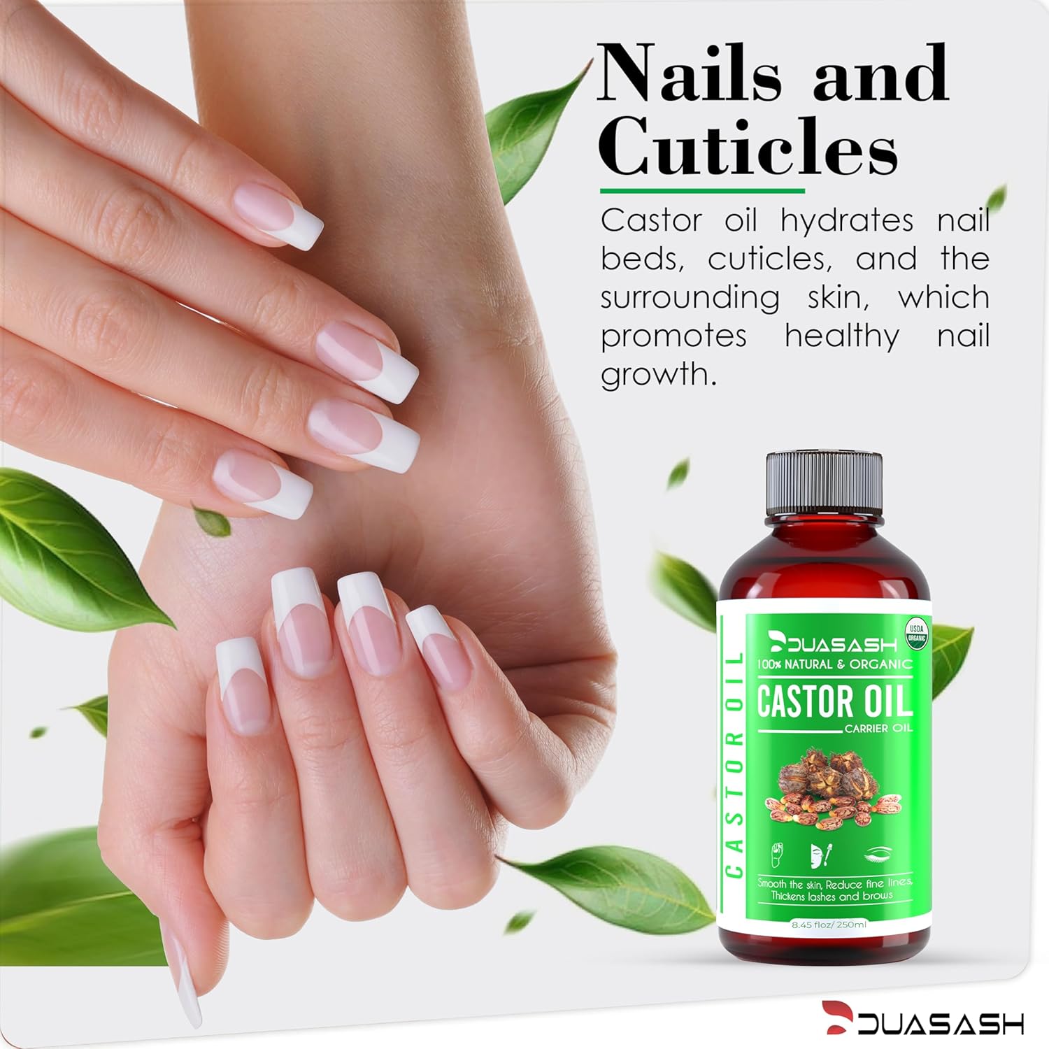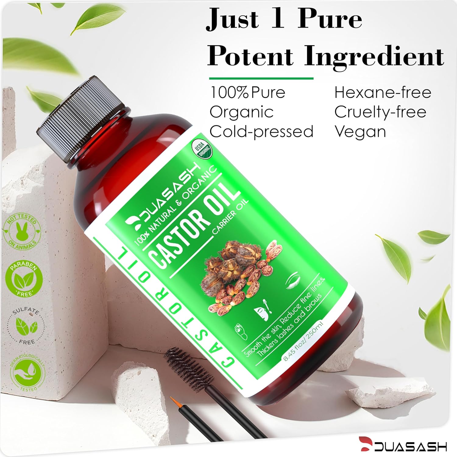 Duasash Ricinusolie Biologische koudgeperste biologische castorolie voor haargroei, natuurlijke ricinusolie voor lichaam, haren, nagels, wimpers, wenkbrauwen, biologische ricinusolie