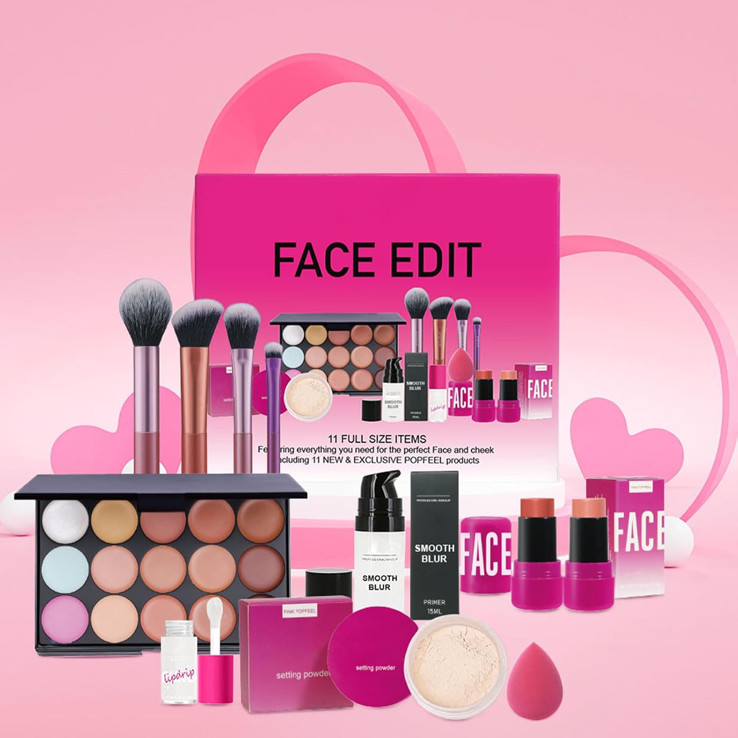 Dyeulget Reismake -, full -starter make -up set | Waterdichte gezichtscosmetica -kit voor meisjes,Face make -upbenodigdheden omvatten primer, poederdeksel, los poeder voor salons, persoonlijk gebruik