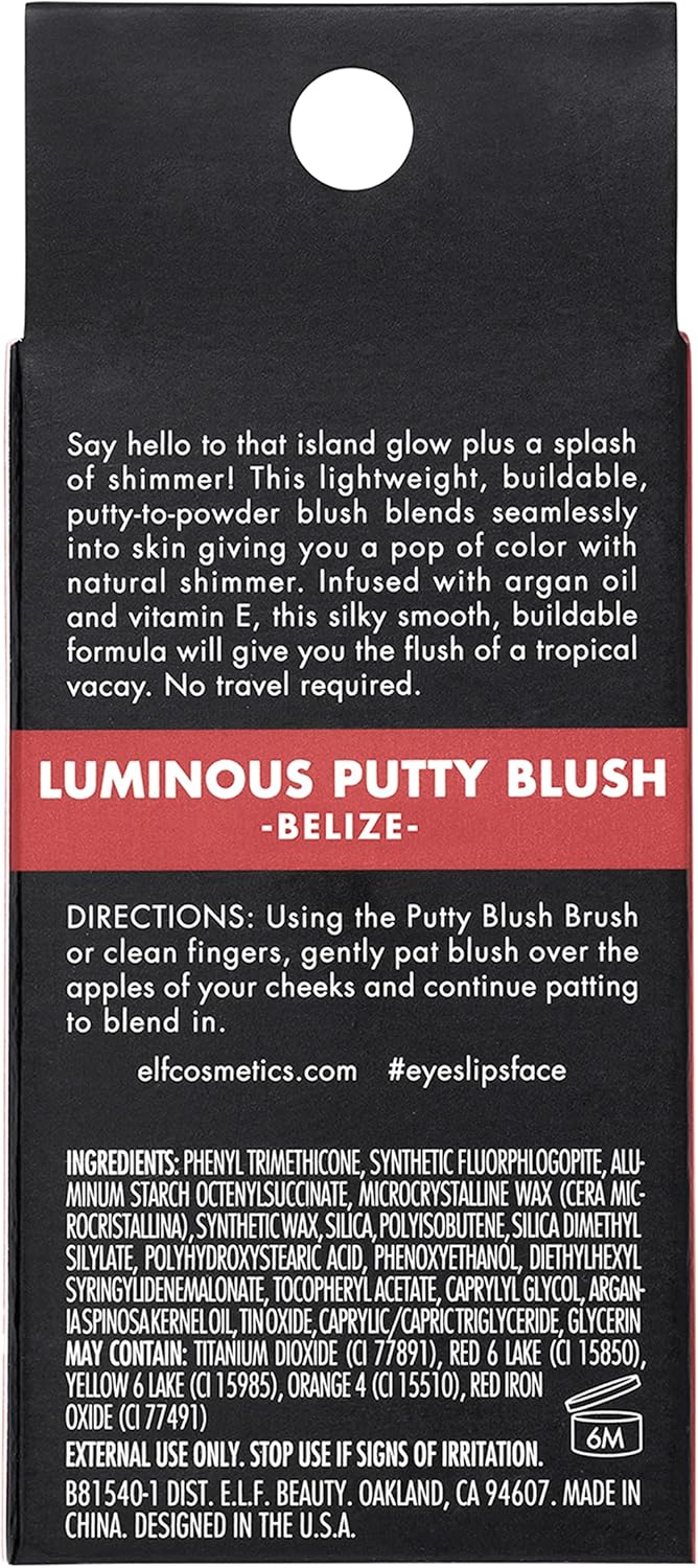 e.l.f. Lichtgevende Putty Blush, Putty To Powder Blush met een Shimmer Finish, Lichtgewicht, Bouwbare Formule, Belize