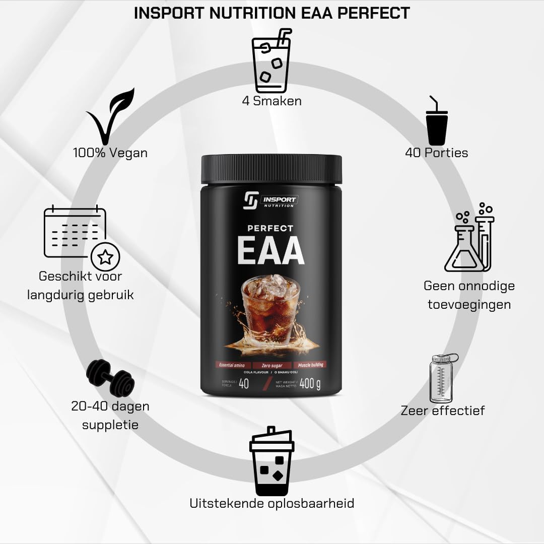 EAA PERFECT – Professioneel Sportsupplement – Aminozuren – Poeder voor Spieropbouw en Herstel – 40 Doseringen – 400g Poeder: (Cola)