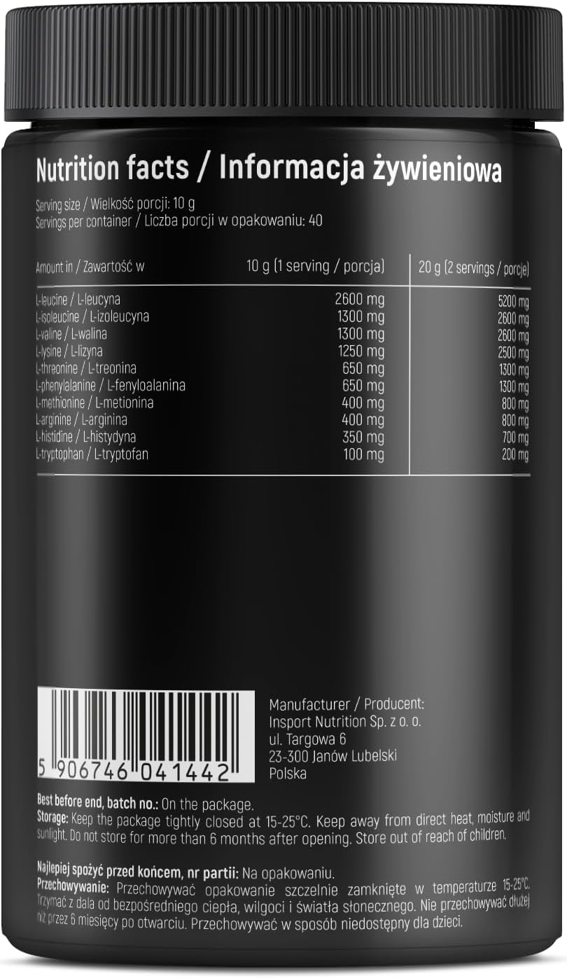 Voedingssupplement EAA PERFECT 400g. Een formule voor na de training die een optimale combinatie biedt van essentiële aminozuren (EAA) en BCAA’s met vertakte keten (L-leucine, L-isoleucine, L-valine) van de hoogste kwaliteit. Het product is met name geschikt voor wedstrijd- en recreatiesporters.