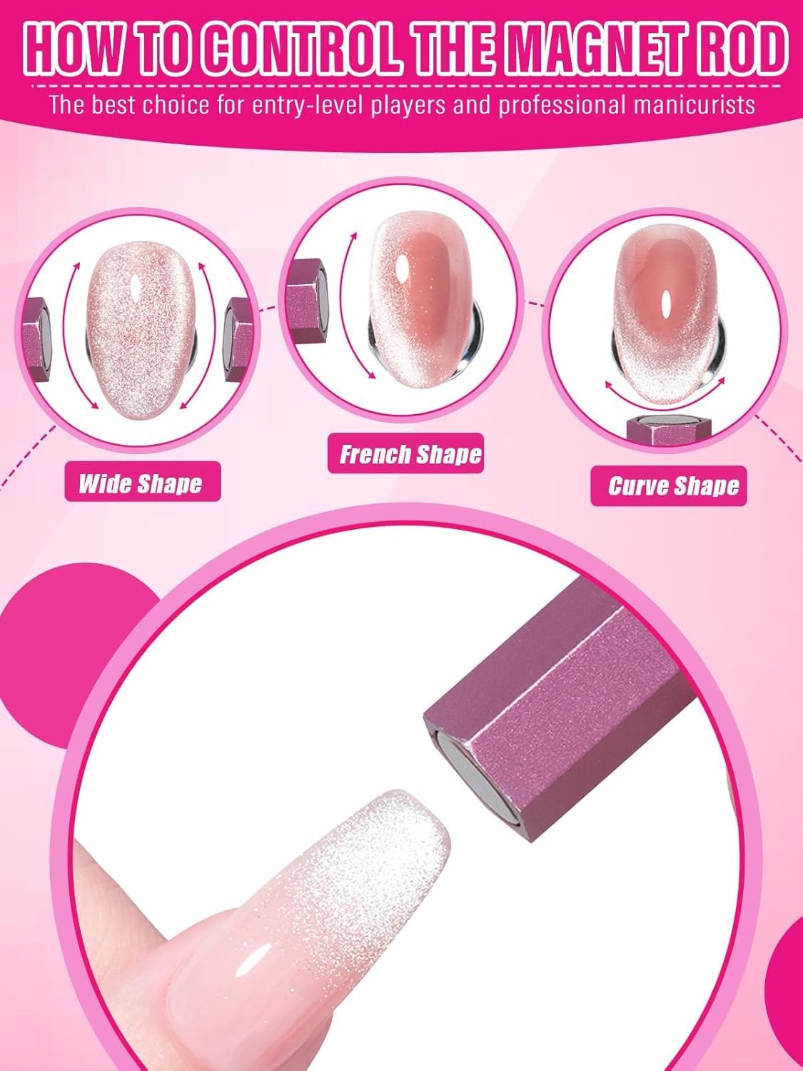 【Maak verschillende Cat-Eye-effecten】Magneetspijkers bevatten 5 verschillende magneetkoppen, elke magneetkop kan verbluffende cat-eye-effecten creëren onder verschillende hoeken, zoals zwarte gaten, sterrenstelsels, lijnen, golven en geometrische patronen. Ook het lange penontwerp van de magneetstick zorgt voor een comfortabele grip, die met verschillende hoeken en posities experimenteert om verschillende kattenoogeffecten te bereiken.
