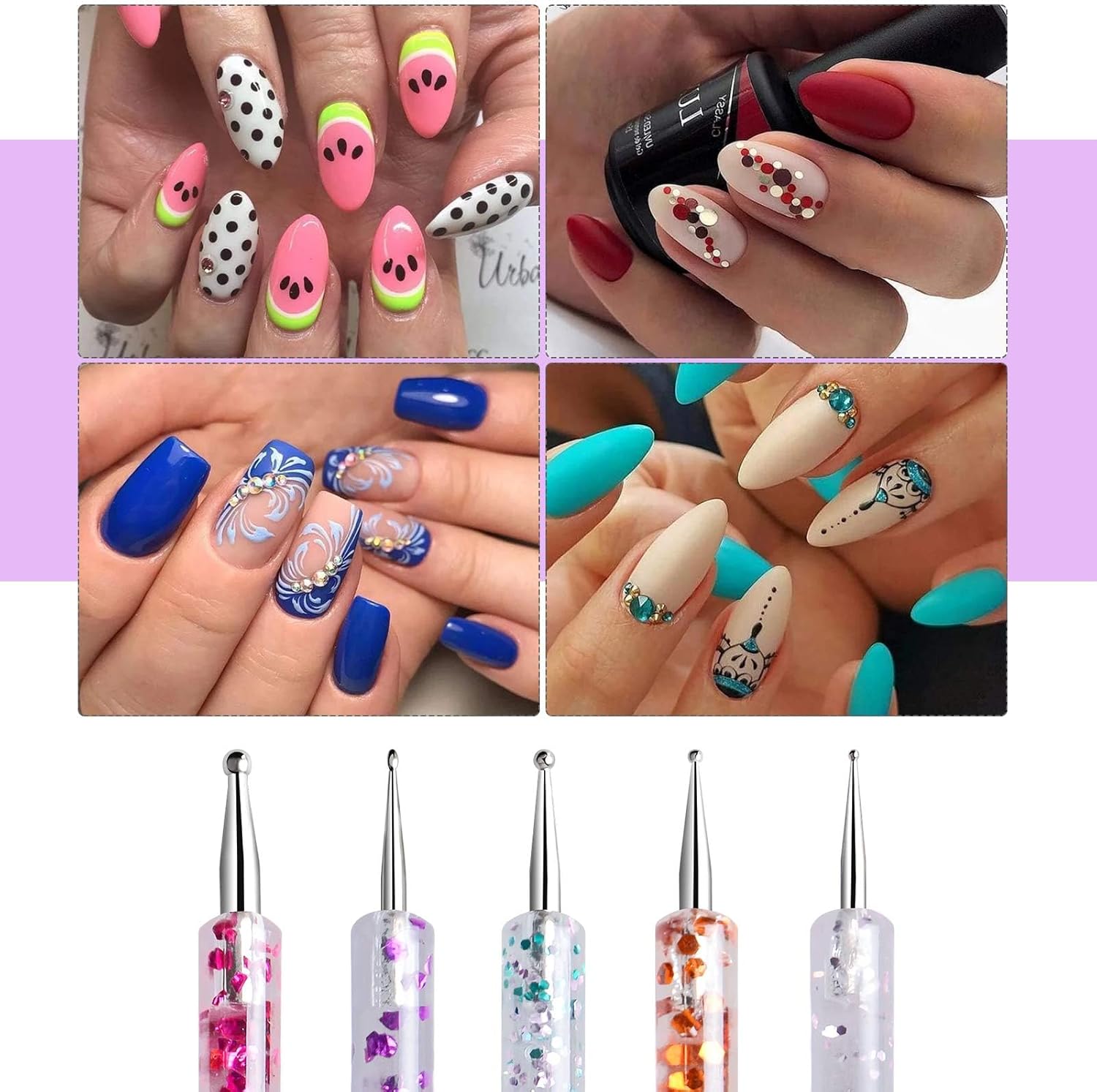 ⚡ Practical and multifunctional nail brushes: The silicone nail paint brushes in different shapes can be applied for drawing different patterns, picking up nail rhinestones and nail decorations; The double nail dot pens come with several double ends, one with a larger ball and another with a smaller one, which can help you make different sizes of point or swirl patterns, and the sharp lining brush with detail is a good choice.