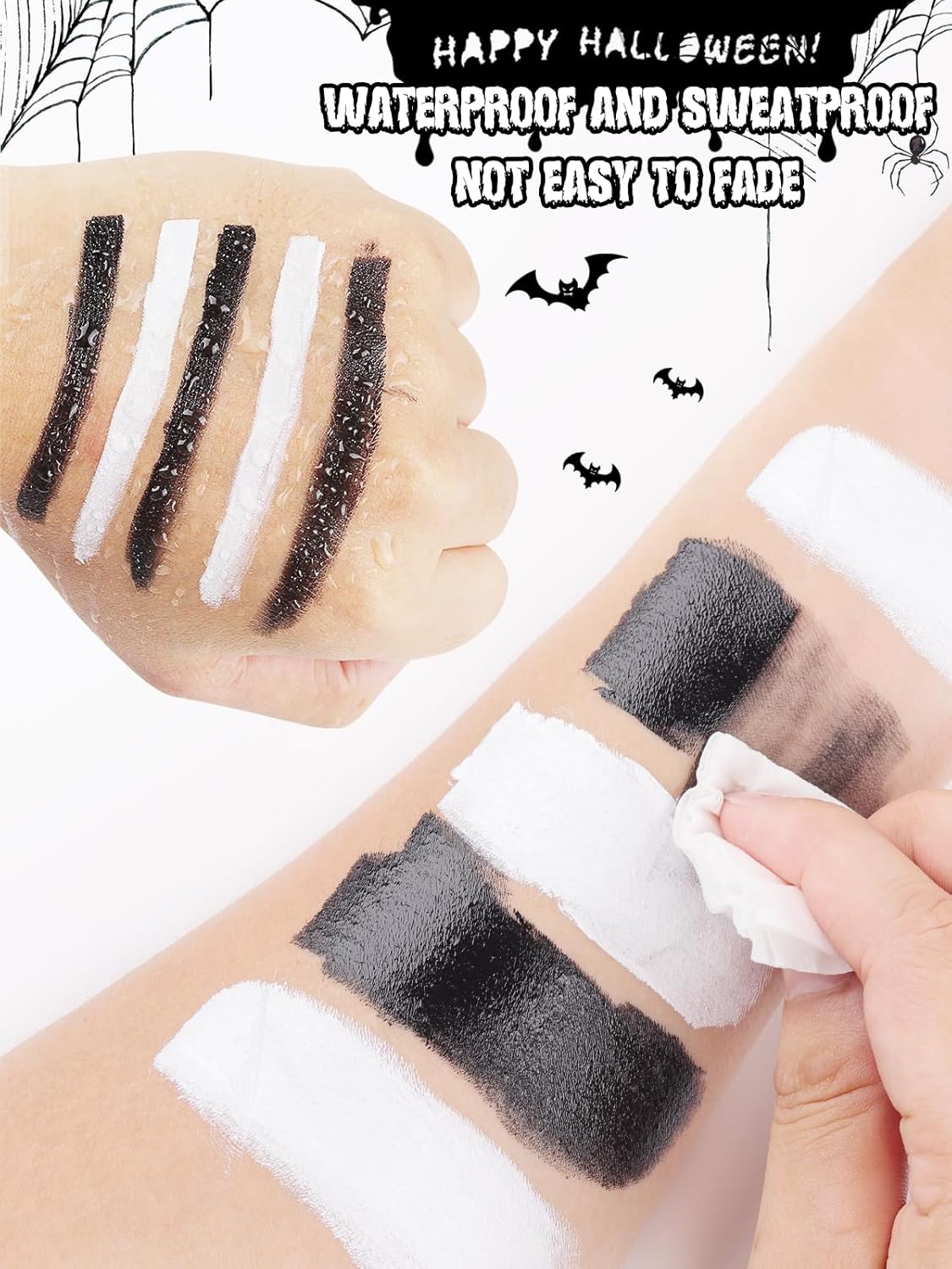 EBANKU Face Body Paint Stick Oil, White Eye Black Sticks for Sports, Cream Skeleton Joker Mime Foundation Makeup, Face Painting Kit for Halloween SFX Cosplay Costume Party (H-B-TZ)