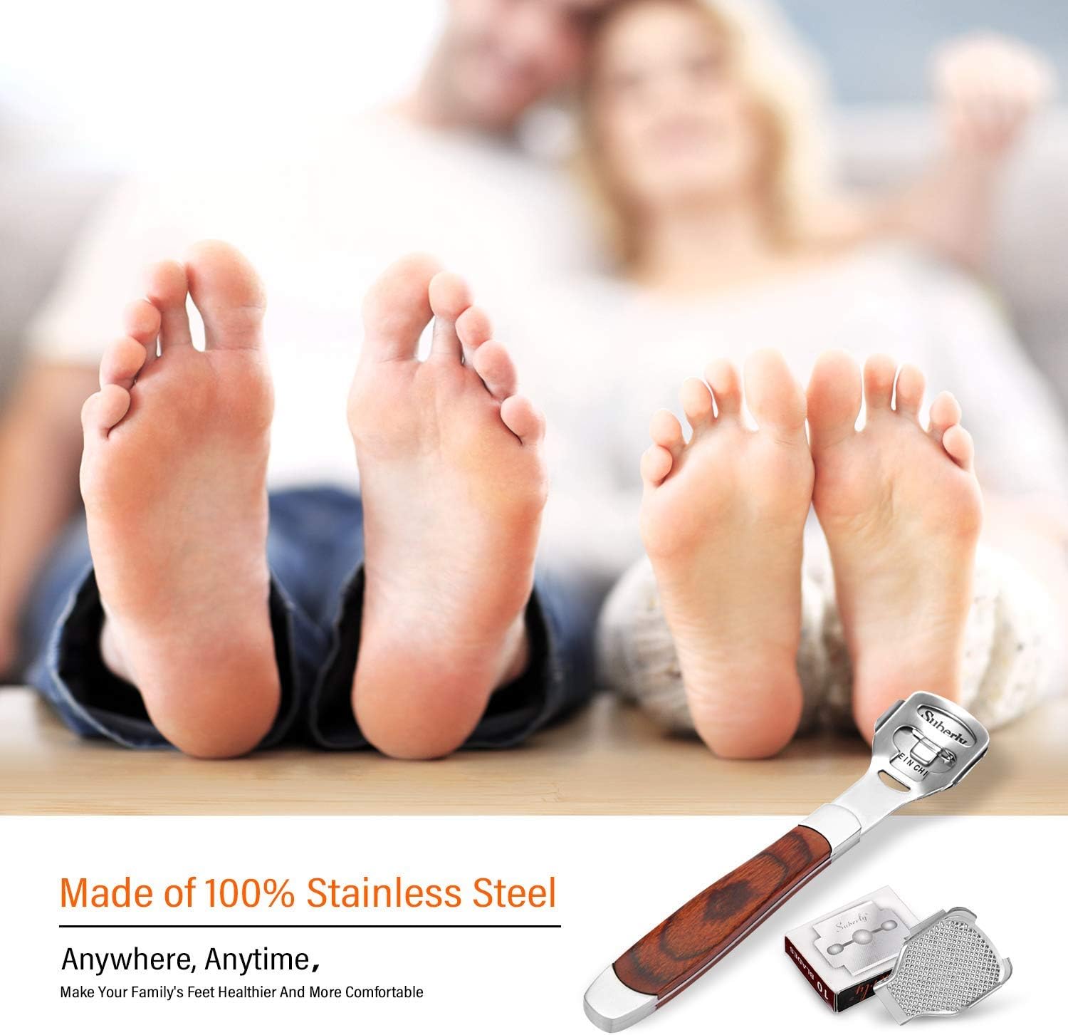 Eeltschaaf, Eeltverwijderaar, Eeltrasp Voet, Eeltschraper voor Voetverzorging, Voetvijl Eelt Dossier, Edele Houten Handgreep, 10 Mesjes, Doos