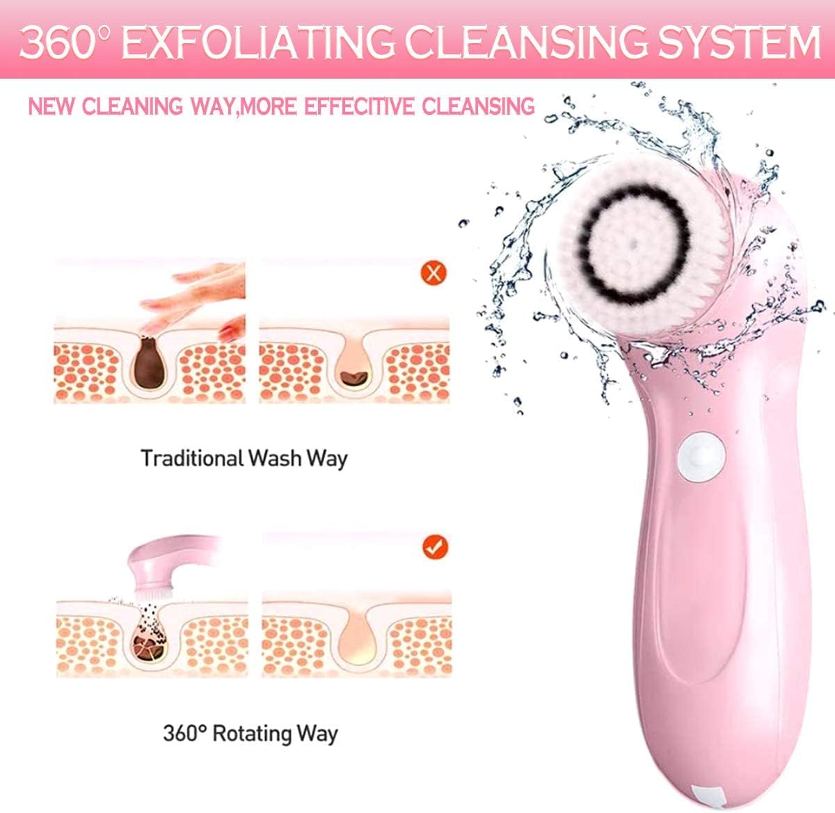 360 graden draaibare borstel bereikt een diep reinigend effect; twee-speed controle en 3 verschillende gezichtsborstelkoppen (inclusief 1 siliconen kop) en een beschermende reiskoffer kunnen voldoen aan de reinigingsbehoeften van ruwe huid en gevoelige huid, waardoor u een volledig scala aan reiniging krijgt, van zachte reiniging tot krachtige diepe reiniging. Geschikt voor alle huidtypes.