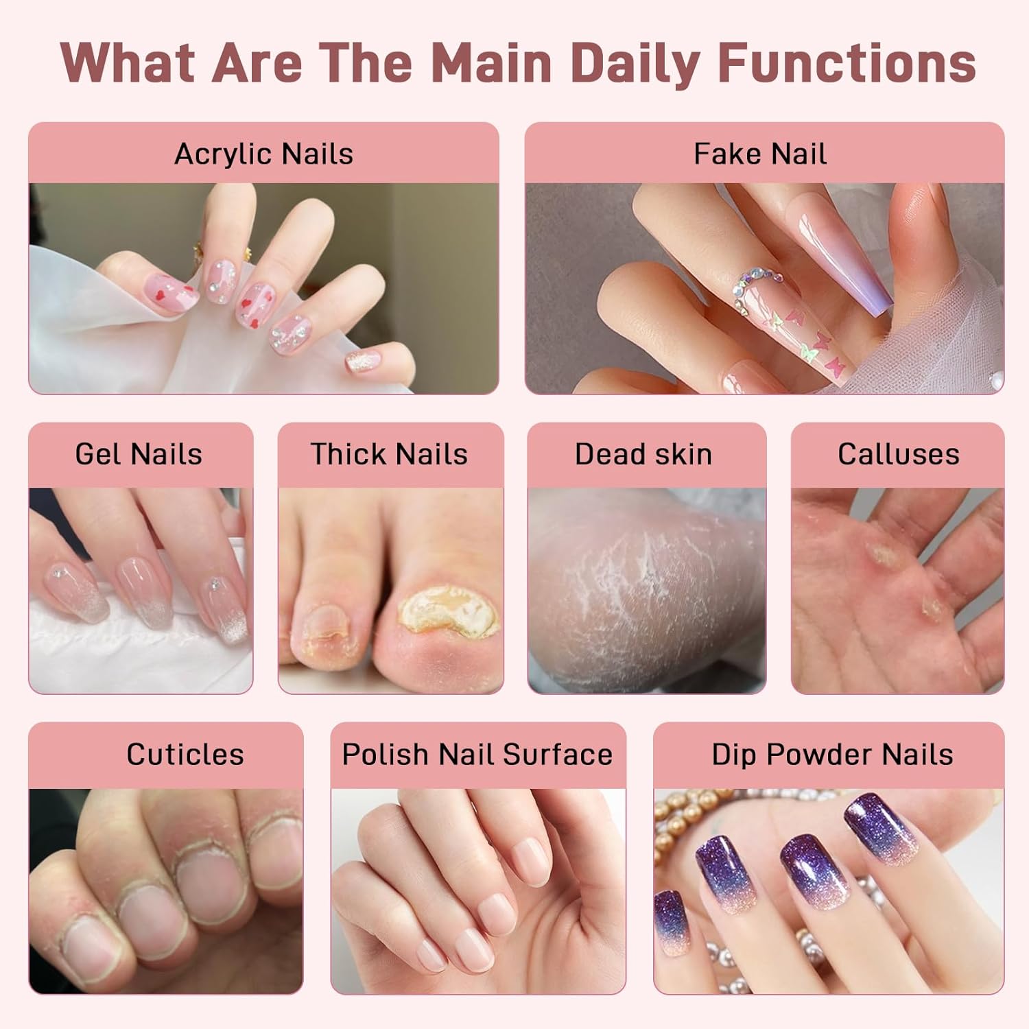 4. Voldoe aan al je dagelijkse manicure- en pedicurebehoeften, inclusief het verwijderen van acrylnagels, polygelnagels, kevergel, dip poedernagels, vormgeven, polijsten, nagelriemen, dode huid en dikke nagels.