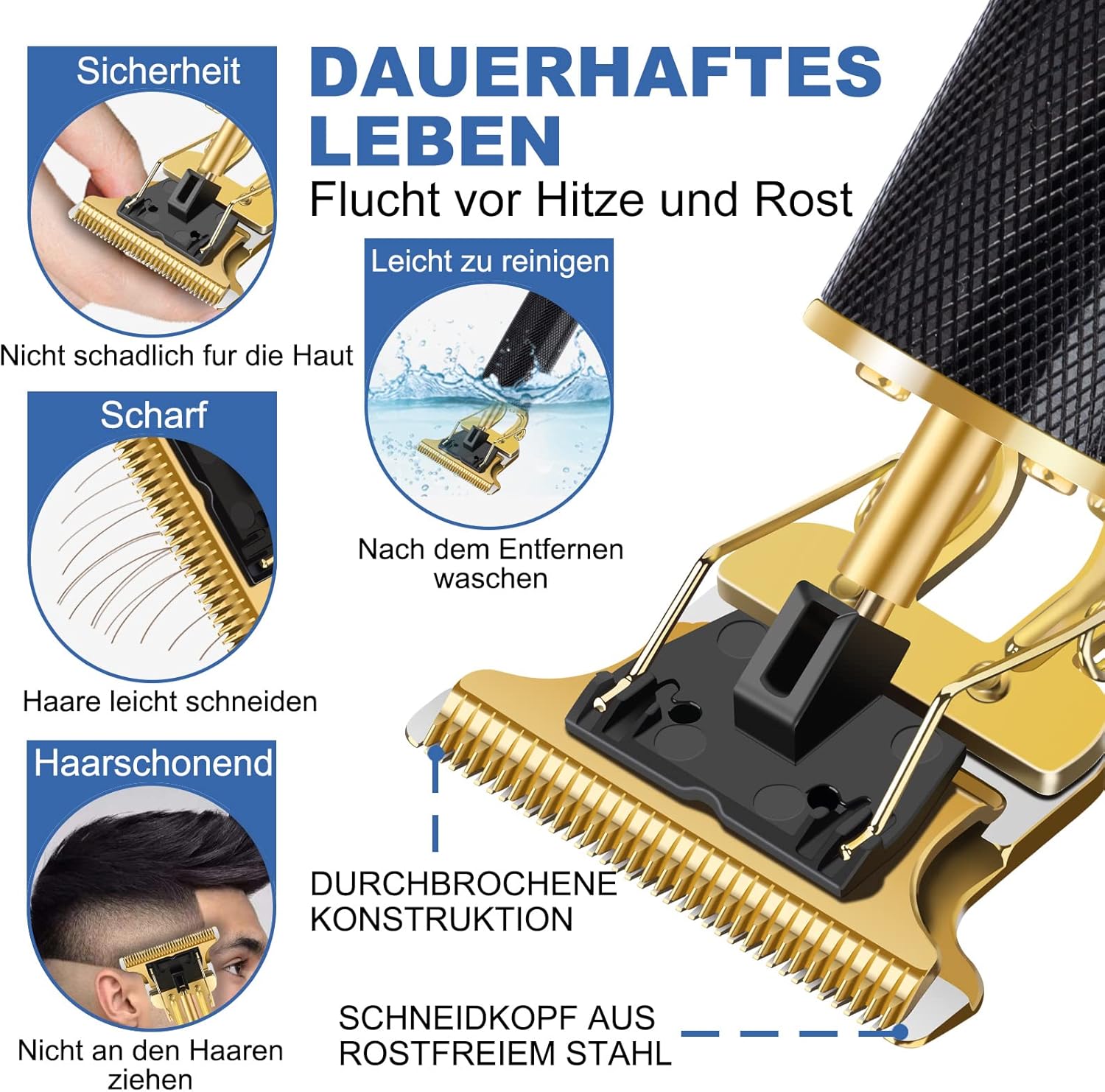 Met de hoogste precisie vervaardigd, is de 4 cm brede T-vormige snijkop van roestvrij staal een perfecte mix van vakmanschap en functionaliteit. Zijn vlijmscherpe messen glijden moeiteloos door het haar en zorgen elke keer voor een gladde en niet-irriterende snede. Een beschermkap beschermt de snijkop tegen slijtage en maakt een eenvoudige reiniging onder stromend water mogelijk.
