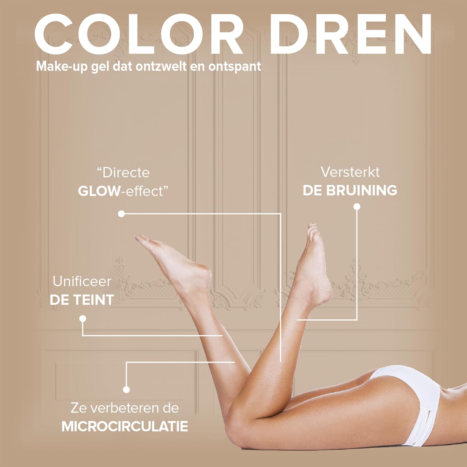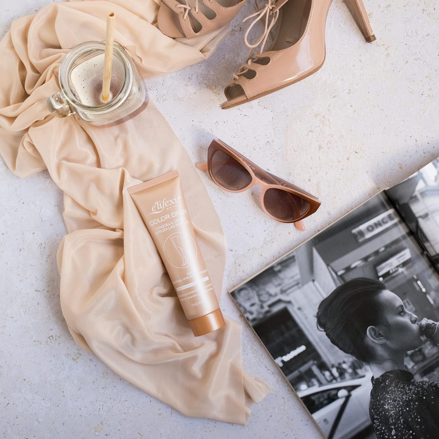 Elifexir Color Dren | Beenmake-up. Maakt op, Draineert en Stileert met een Bruine Teint, Crème met het Effect van Onzichtbare Panty’s, Vlekt niet en Snelle Absorptie. 150 ml