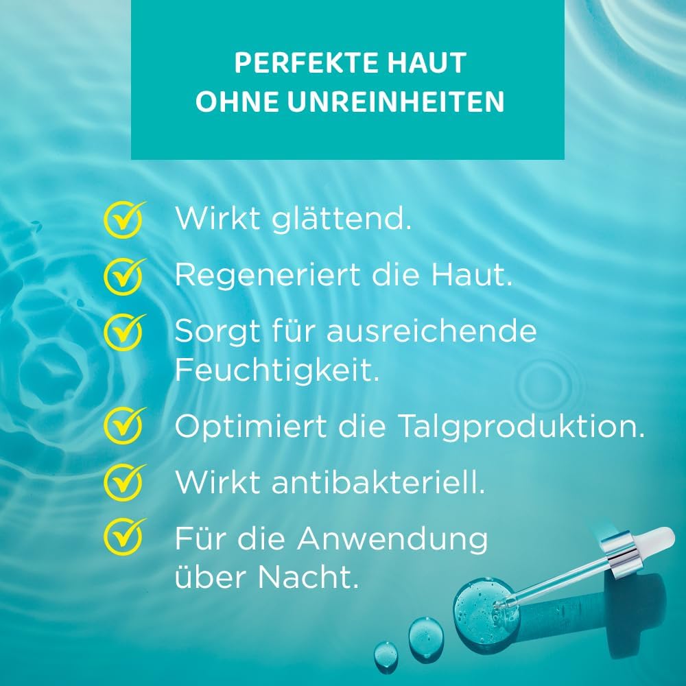ie Eveline Cosmetics Perfect Skin Akne Nachtbehandlung wird in einer umweltfreundlichen Pappverpackung geliefert und befindet sich in einer eleganten Glasflasche mit praktischer Pipette. Das Design wirkt hochwertig, und die Pipette ermöglicht eine präzise und hygienische Dosierung, was ich besonders schätze.Die Konsistenz des Serums ist angenehm dickflüssig, wodurch es sich mühelos auftragen lässt, ohne dass es von der Haut herunterläuft. Für die Anwendung entnehme ich 3-4 Tropfen, die ich leicht in die Haut einmassiere. Die Ergiebigkeit des Produkts ist bemerkenswert – bei täglichem Gebrauch reicht eine Flasche problemlos für mehrere Monate.Schon nach der ersten Anwendung fühlte sich meine Haut glatter und weicher an. Der AHA-, BHA- und PHA-Komplex entfernt sanft abgestorbene Hautzellen, während Niacinamid und Süßholzwurzelextrakt die Haut beruhigen und Rötungen sichtbar reduzieren. Besonders angenehm finde ich, dass das Serum schnell einzieht und kein klebriges Gefühl hinterlässt.Allerdings ist das Produkt keine alleinige Lösung bei stärkeren Hautproblemen wie Akne. Für optimale Ergebnisse kombiniere ich es mit einem Gesichtsreinigungsgel und einer passenden Anti-Pickel-Creme. Diese Routine sorgt für eine deutlich beruhigtere und ausgeglichene Haut.Fazit:Das Serum überzeugt durch seine hochwertige Formulierung und sichtbare Ergebnisse bei regelmäßiger Anwendung. Es eignet sich besonders gut, um die Haut zu glätten, Rötungen zu reduzieren und das Hautbild zu verfeinern. Für eine umfassende Pflege sollte es jedoch mit anderen Produkten kombiniert werden.