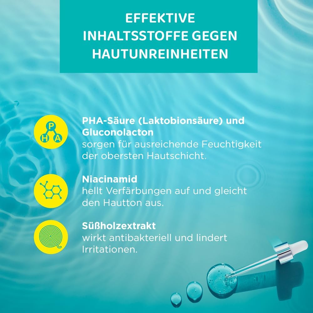 Bereits seit einiger Zeit verwende ich andere Produkte der Marke Eveline, da meine empfindliche Haut diese gut verträgt. Habe mich deshalb sehr gefreut, dass ich über das Amazon Vine Program nun dieses Serum testen durfte.Das Serum wird über Nacht angewendet. Durch das chemische Peeling verschiedener Hautschichten werden abgestorbene Hautzellen entfernt, gleichzeitig wird durch die antibakterielle Wirkung Akne verhindert. Das Serum sollte regelmäßig verwendet werden, allerdings verwende ich es nicht täglich. Peeling macht die Haut anfälliger und empfindlich gegen UV-Strahlen. Zur aktuellen Jahreszeit bin ich fast keinen Sonnenstrahlen ausgesetzt, aber ich achte auf die Verwendung ausreichender Feuchtigkeitskpflege.Das Serum ist dank der Pipette einfach aufzutragen und wird gleichmäßig auf das gereinigte Gesicht verteilt. Es zieht schnell ein ohne Rückstände zu hinterlassen. Nebenwirkungen wie Rötungen oder Reizungen sind bisher nicht aufgetreten.Ich habe seit ein paar Wochen so tolle Haut wie schon seit vielen Jahren nicht mehr, sicher trägt auch dieses Serum dazu bei.