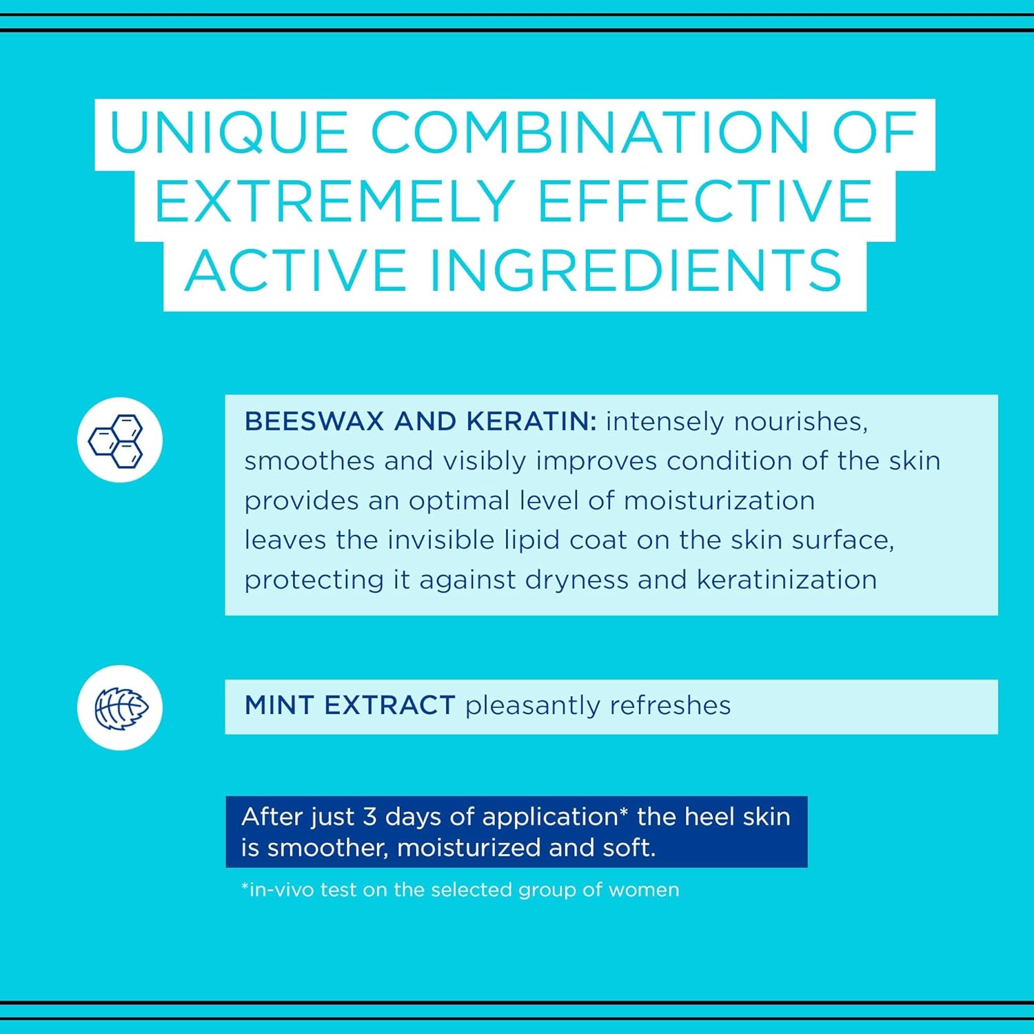 LANGDURIGE VERFRISSING – Zorgvuldig geselecteerde ingrediënten hydrateren niet alleen de gebarsten huid van de hielen, maar zorgen ook voor een langdurige verfrissing dankzij het muntextract.
