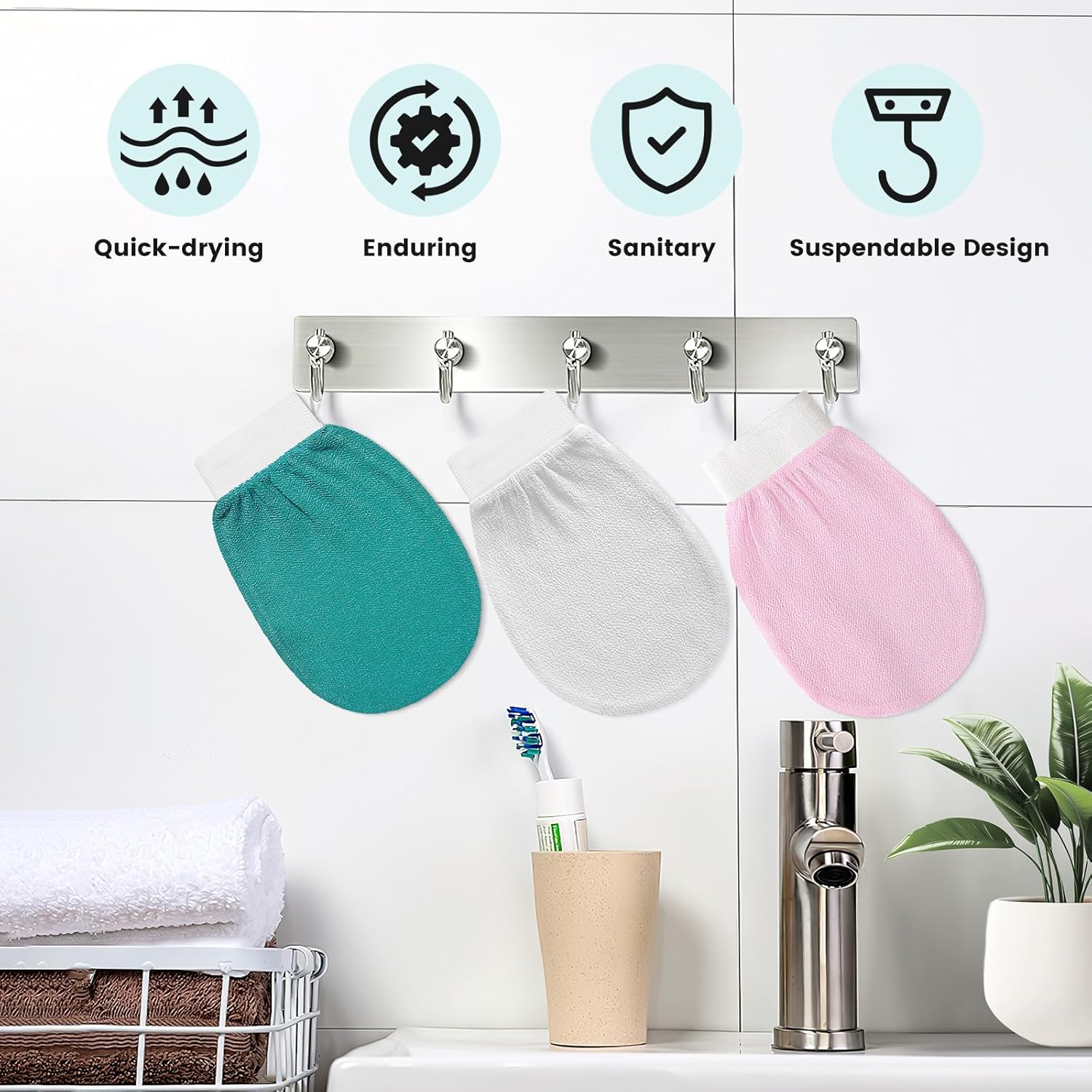 Exfoliërende handschoen, 3 stuks Body Scrub Bad Spa Douche Handschoenen, Body Leg Scrubber Zachte Koreaanse exfoliator exfoliator waswanten voor vrouwen en mannen (wit & groen & roze)