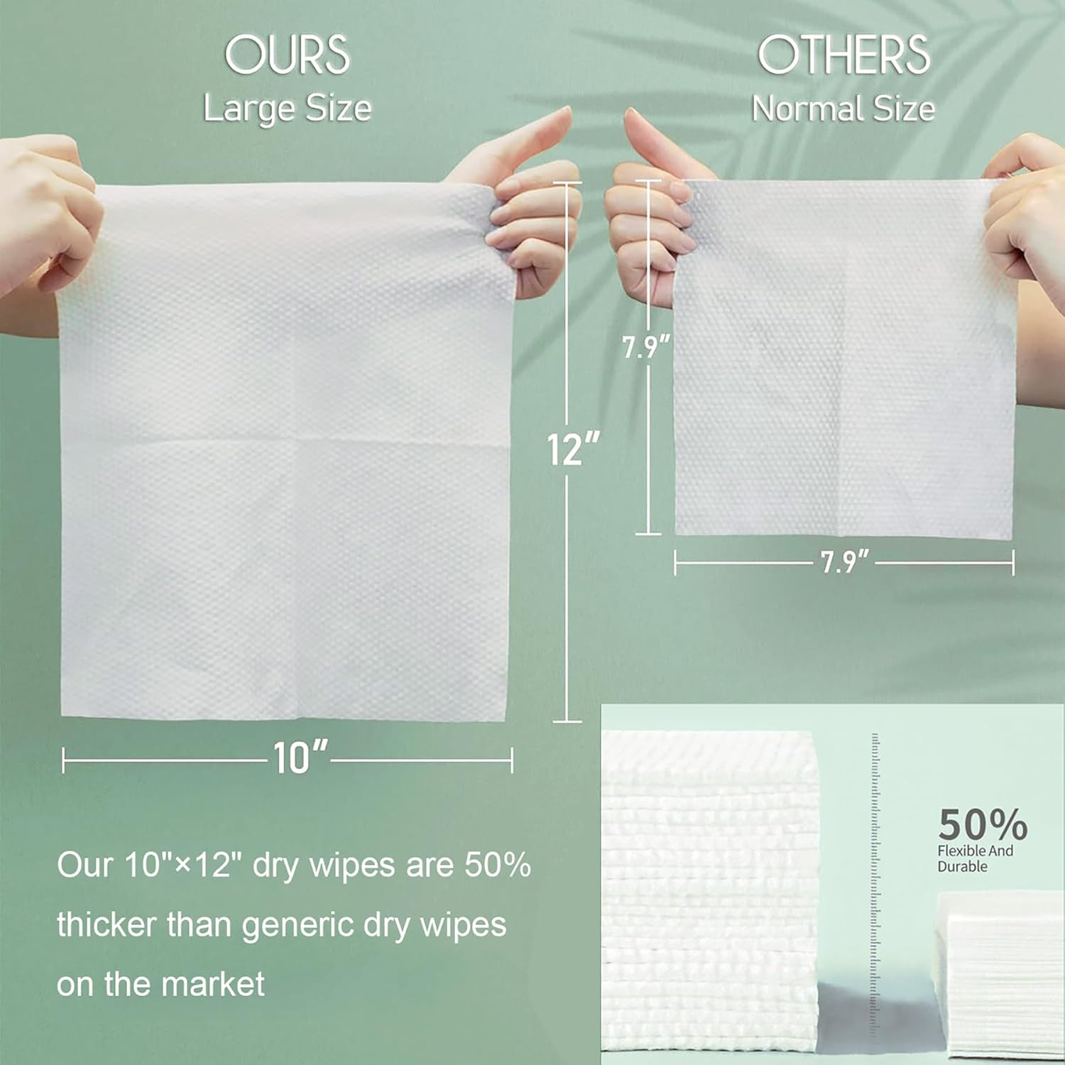 Afmetingen en materiaal: 10 x 12 inch, 50 tellen/verpakking. De gezichtshanddoeken zijn gemaakt van natuurlijke vezels die 100% biologisch afbreekbaar en twee keer zo sterk, zachter en zachter zijn.
