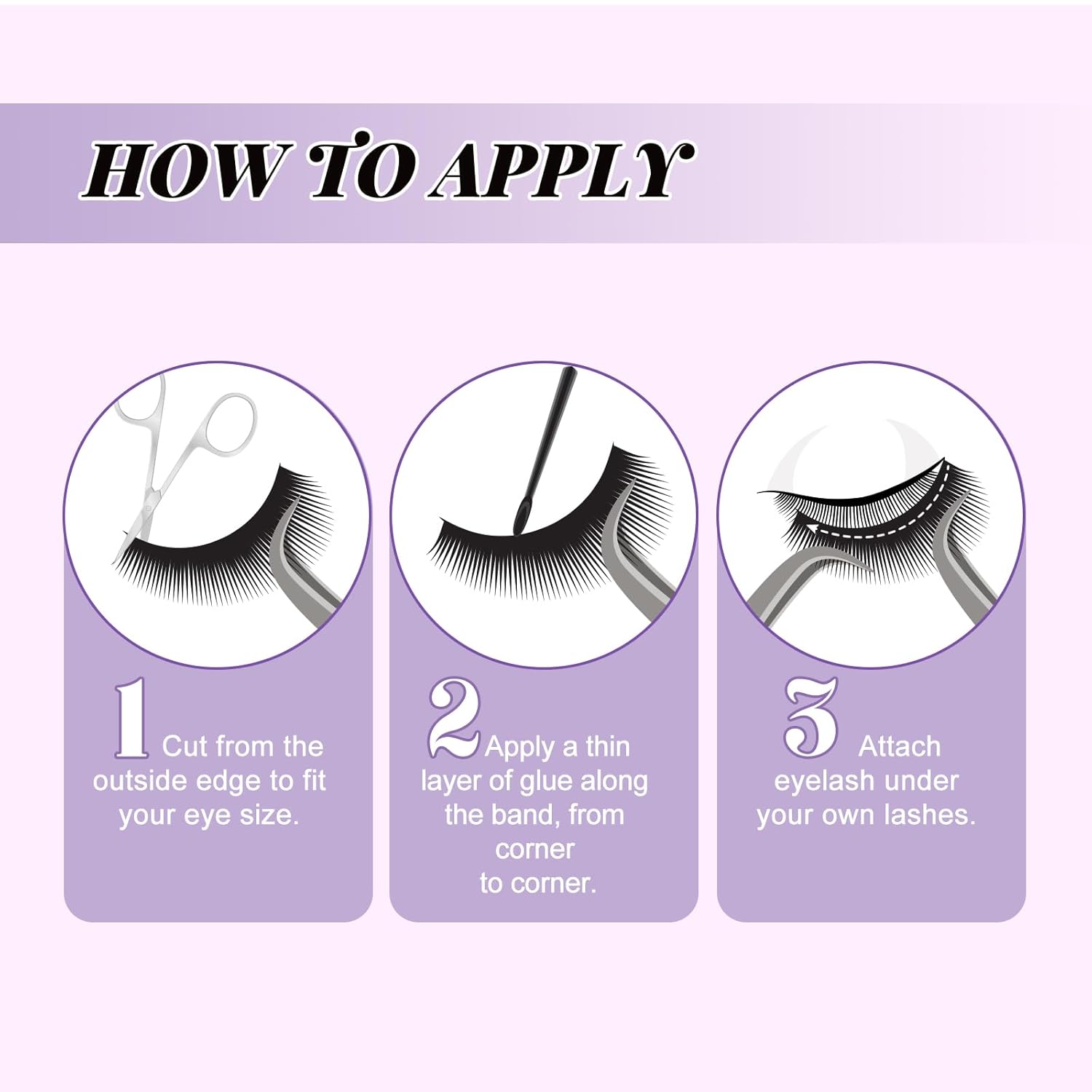 Quick and safe application: Steps: 1.Clean the eyelids; 2.Apply glue; 3.Wait 30s until it is sticky; 4.Press the eyelashes. Adheres immediately with 24 hours of fixation. No Shifting