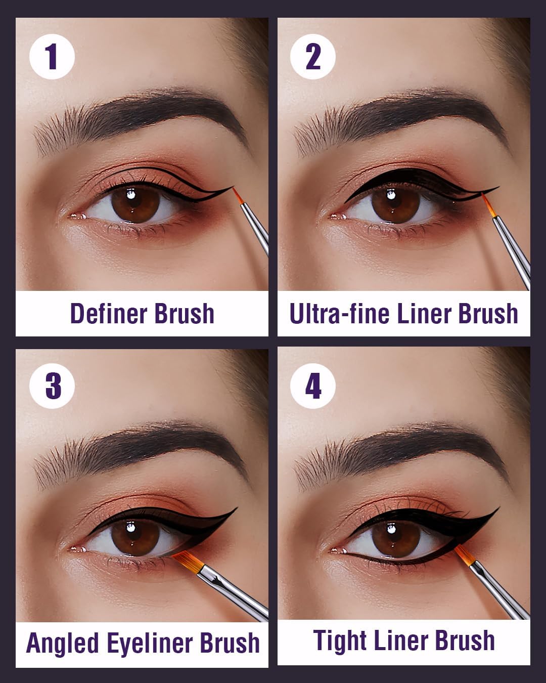 Eyeliner make-up kwastenset – fijne, schuine, gevleugelde, stevige en platte borstels