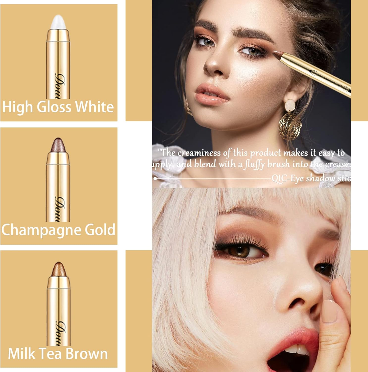 Eyeshadow Stick Set – 3 Kleuren Oogschaduw Stift, Glitter, Waterfast, Met Sponspunt – Creëer Glinsterende Oogmake-up