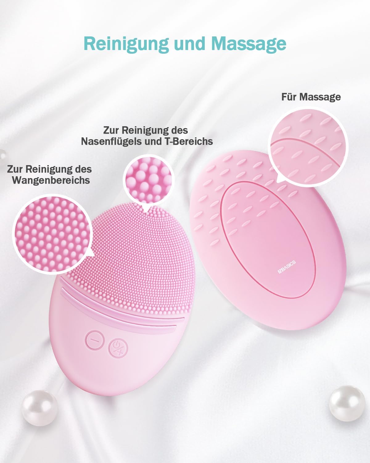 EZBASICS Gezichtsreinigingsborstel, waterdichte vibrerende ultrasone gezichtsborstel voor dieptereiniging, zachte peeling en massage-inductief opladen, lichtroze, 1 pak + 5 snelheden